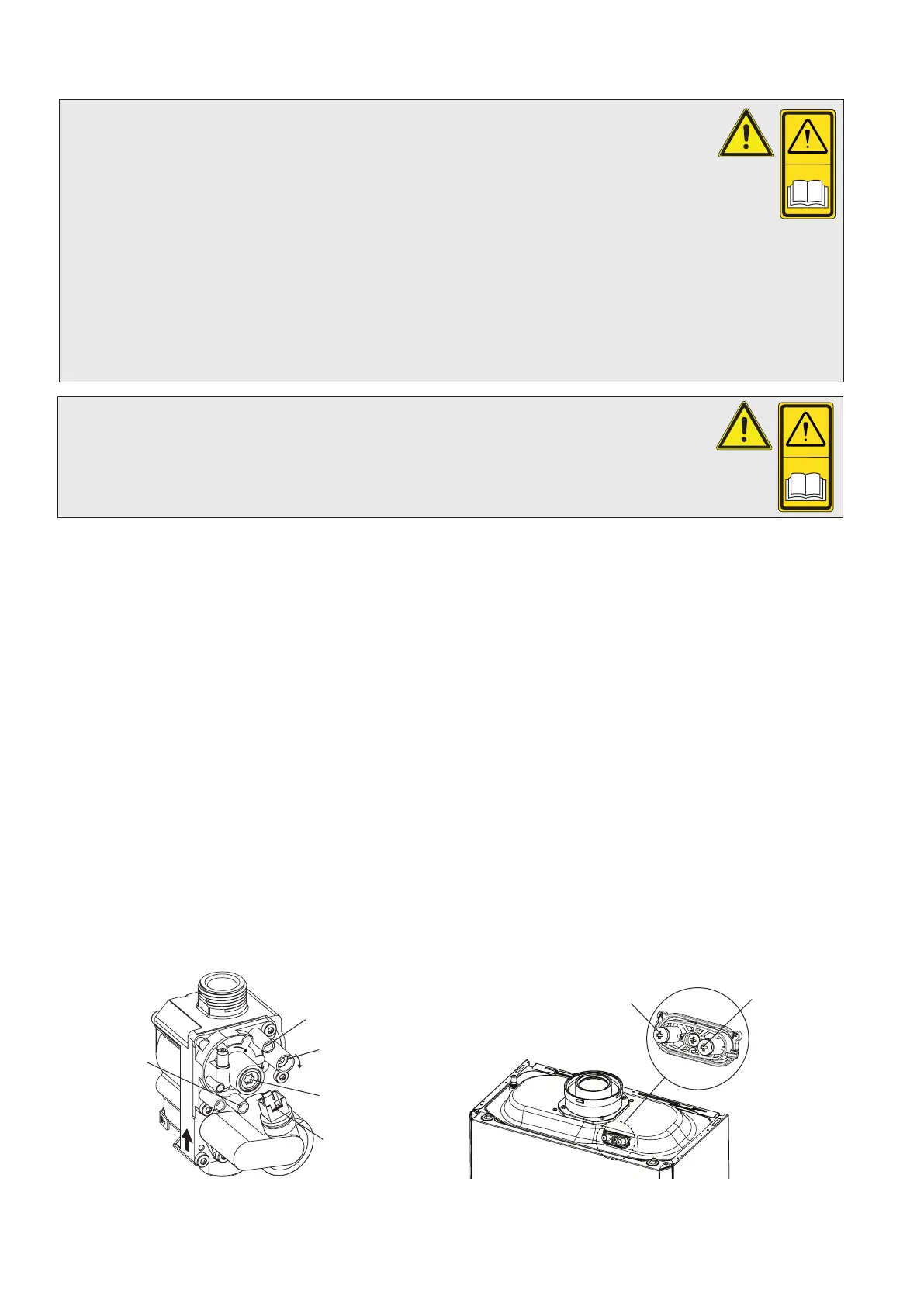 2 checks must be carried out with the case fitted, while the gas valve adjustments must be carried out with