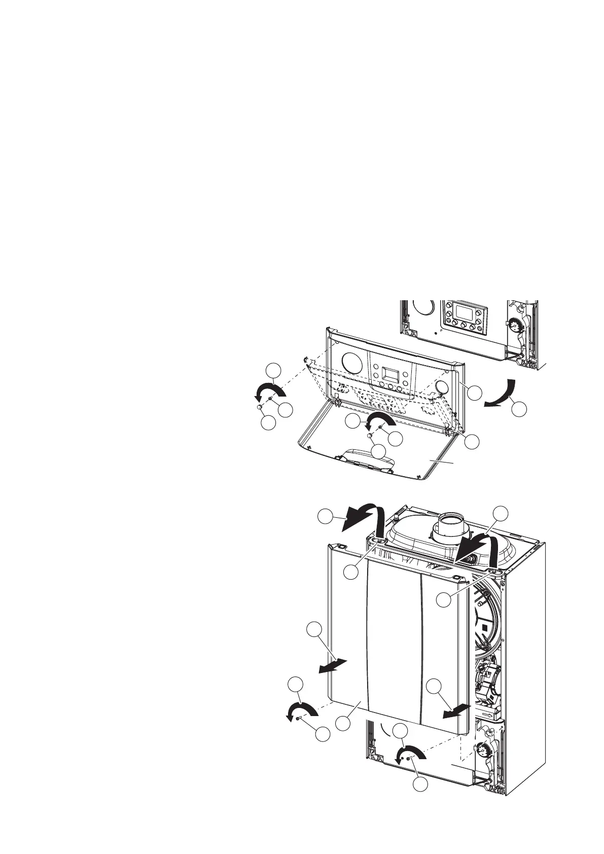 To facilitate boiler servicing and maintenance the casing can be completely removed as follows: