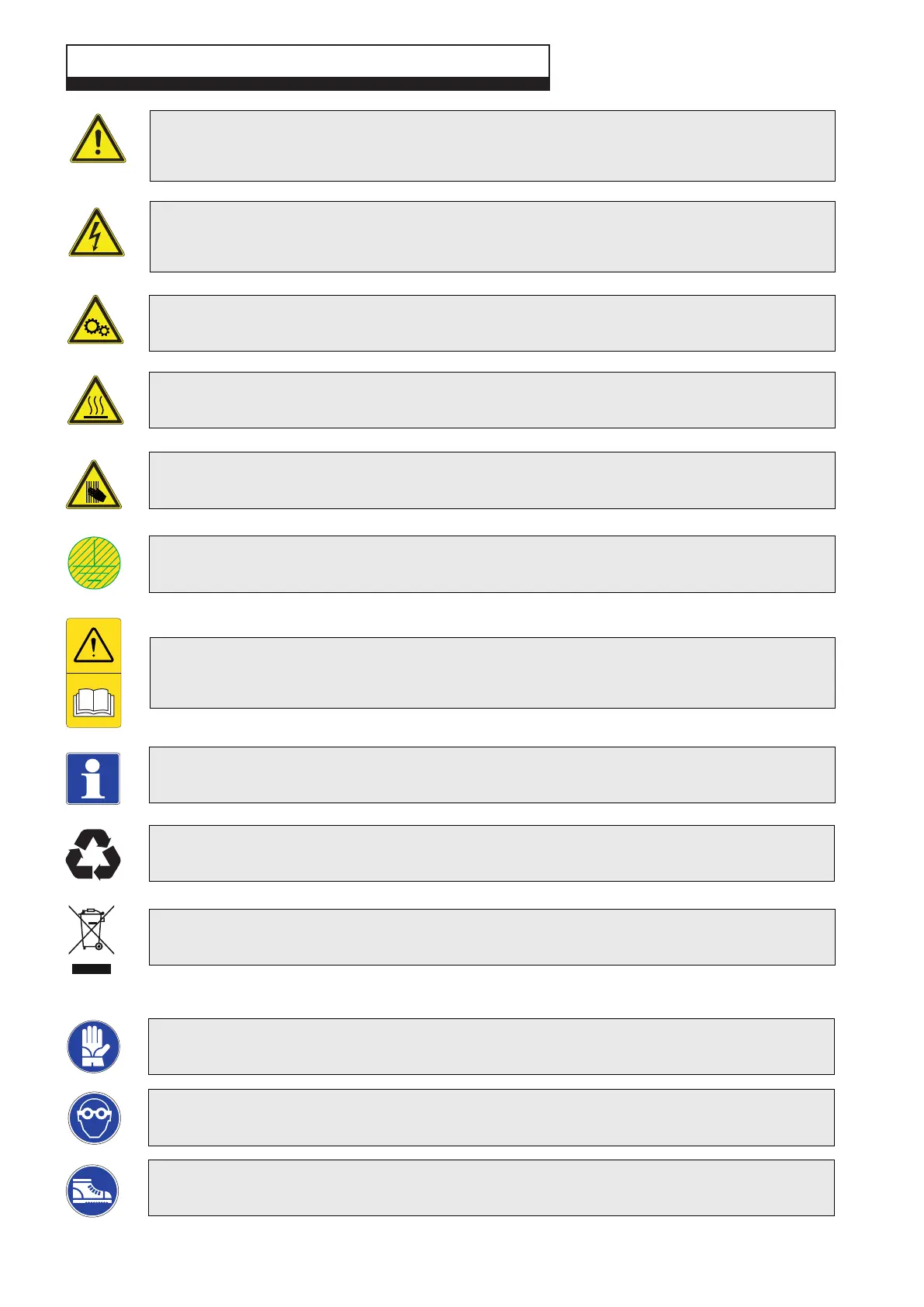 Strictly follow all of the indications next to the symbol. Failure to follow the indications can generate hazard
