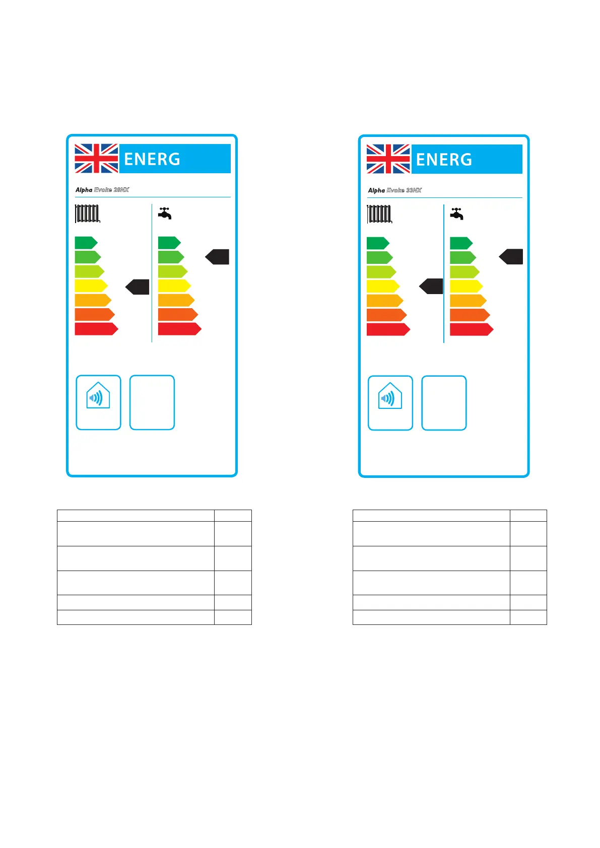 Alpha Evoke 28NX - Product Data Sheets and Energy Labels; Evoke 28 NX and 33 NX Energy Labels