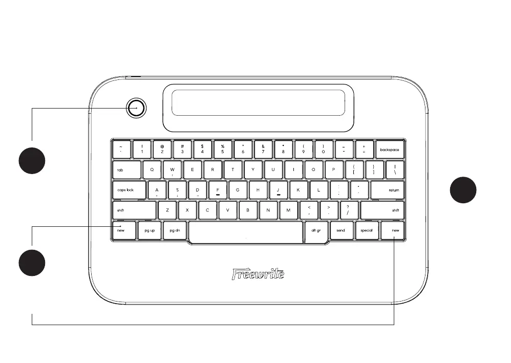 Alpha Freewrite - Quick Start Guide; Power On Device; Pair New Keys; Start Writing