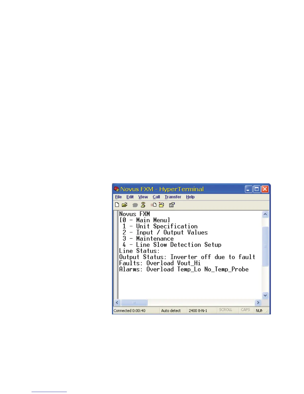 The complete menu tree is given in Figure 14. Tables describing the Line Status, Output Status, Faults and