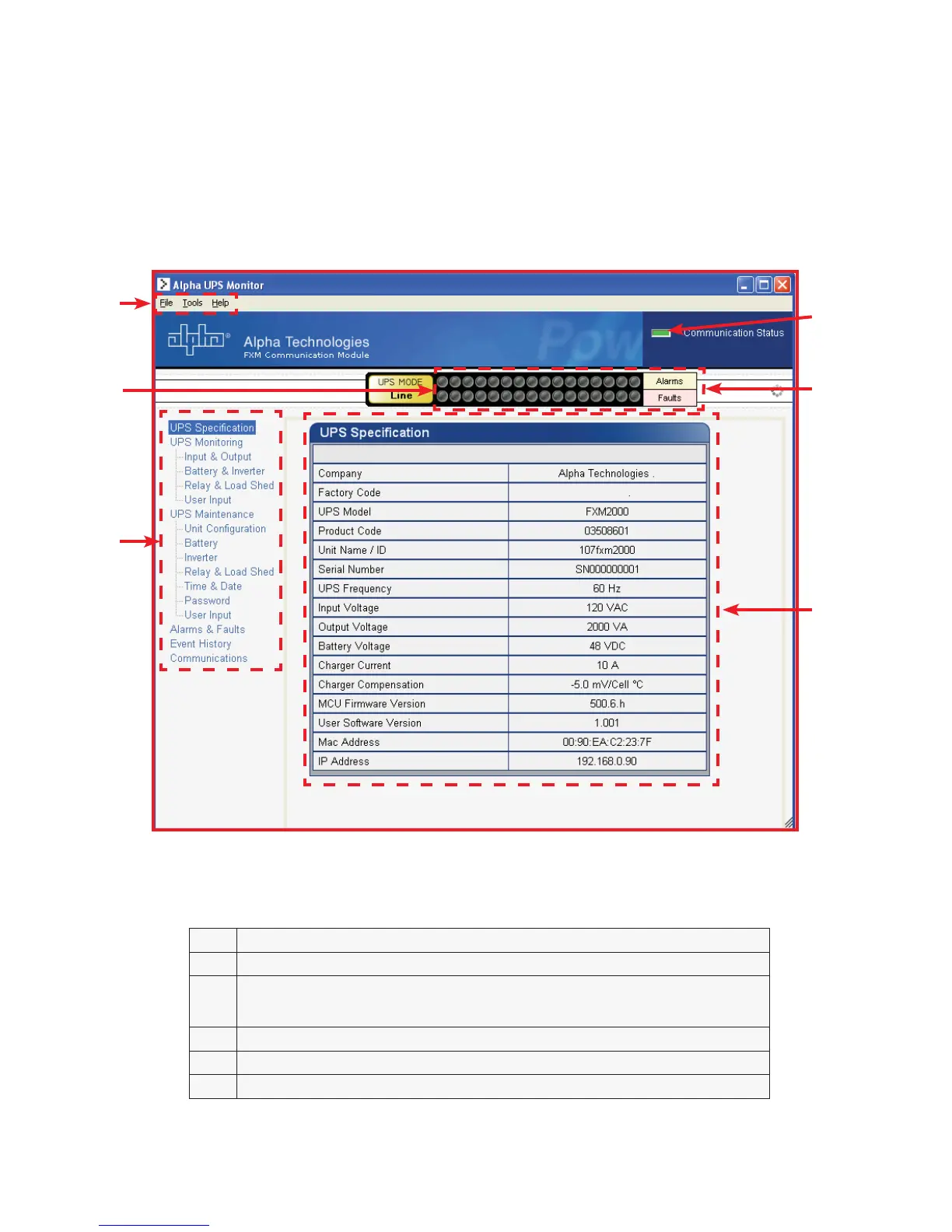 The Alpha UPS Monitor graphical user interface (GUI) provides web or Windows© like computer communications