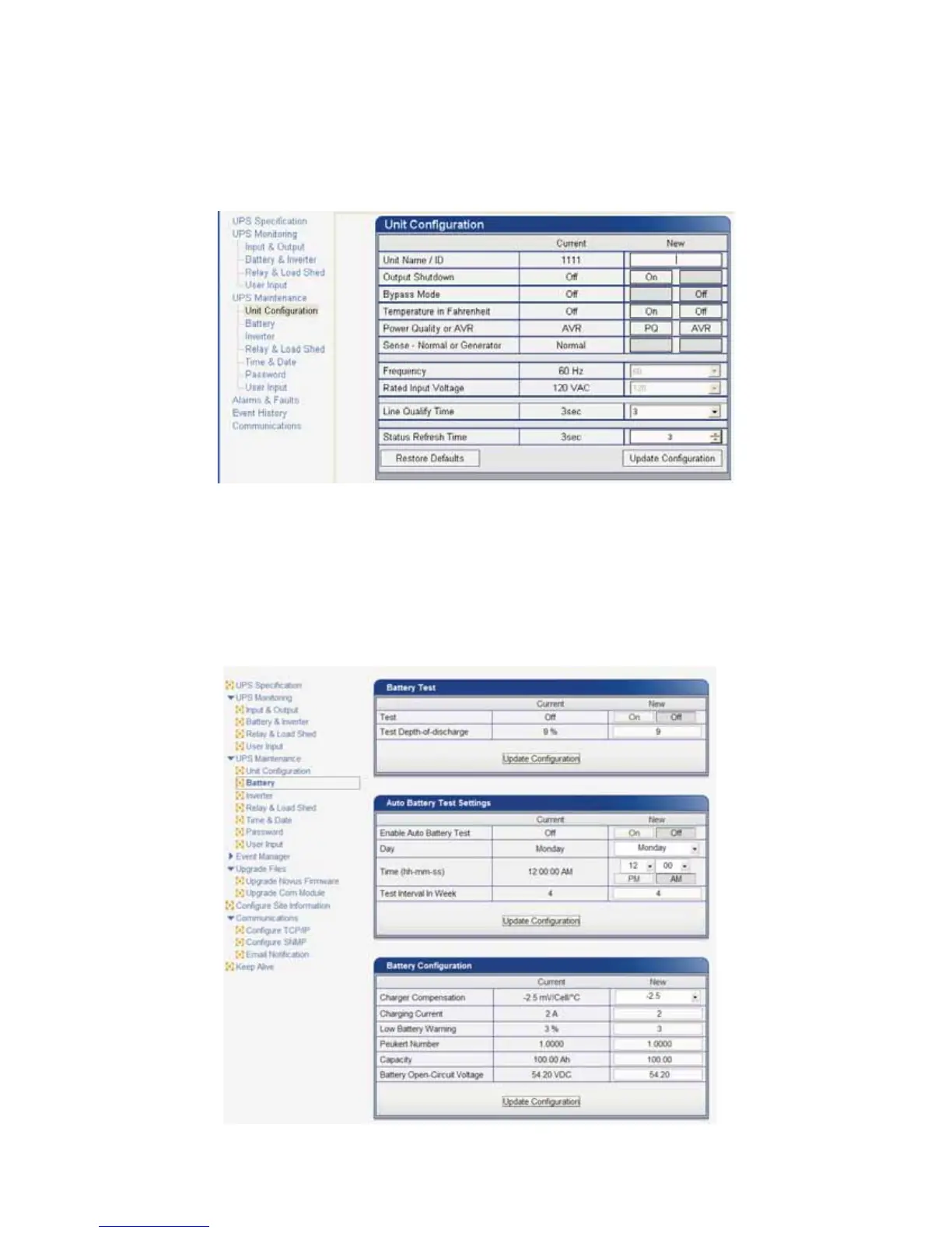 The UPS Maintenance screens are used to configure and adjust the Alpha FXM to meet your operating needs.