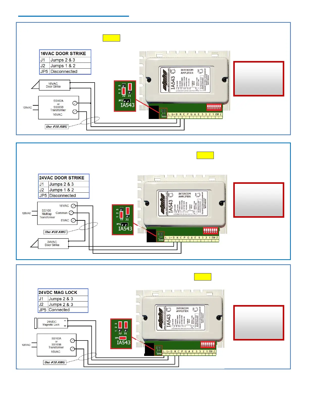 Set jumpers as shown in the chart below. This supplies 16VAC to the door strike through the K & D