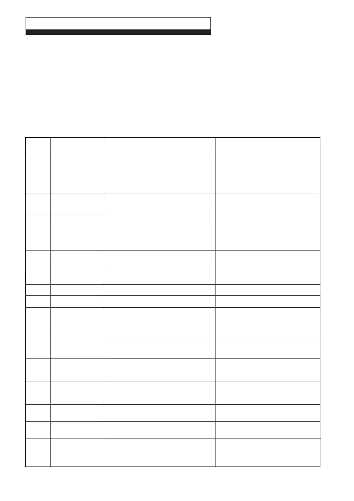 Where an error code is displayed use the following tables to identify the fault and possible causes.