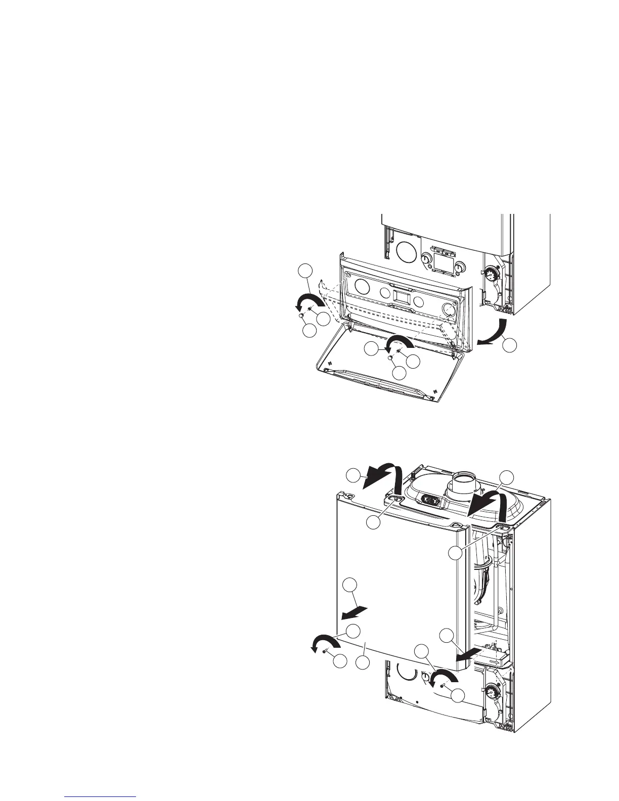 To facilitate boiler servicing and maintenance the casing can be completely removed as follows: