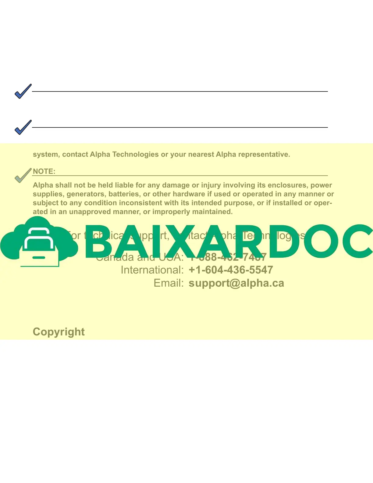 system, contact Alpha Technologies or your nearest Alpha representative.