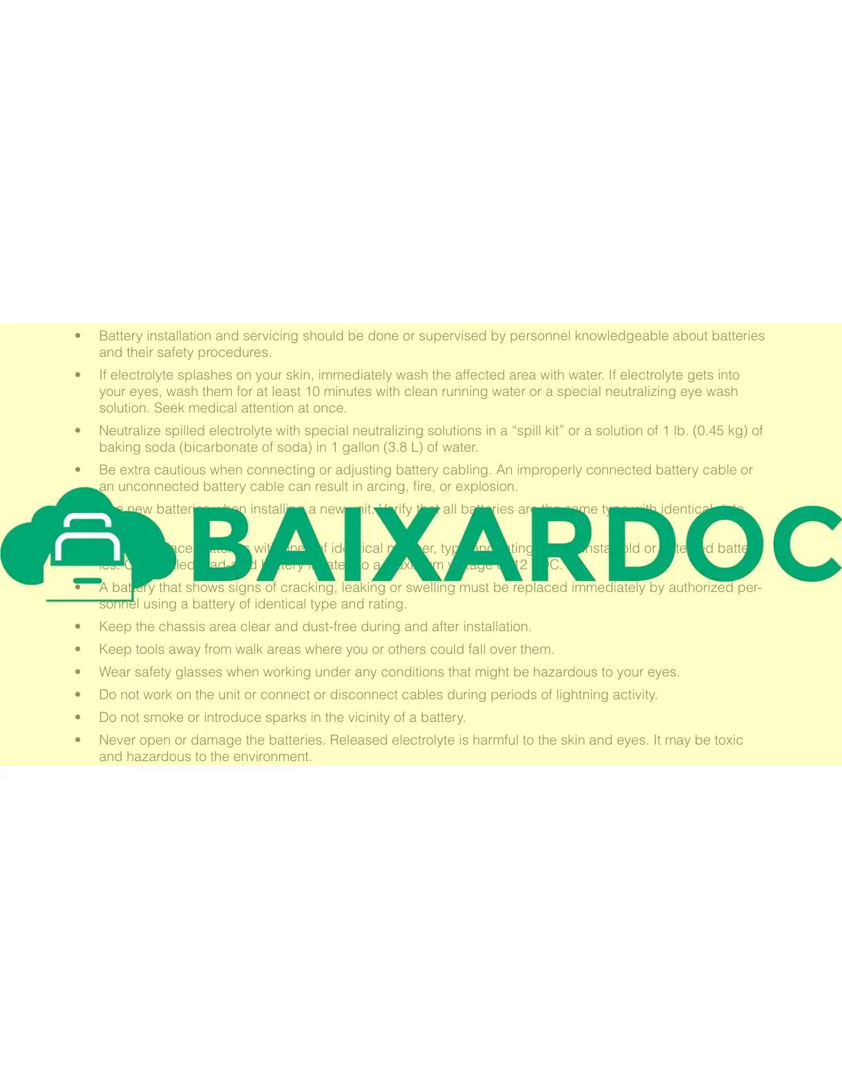 •Battery installation and servicing should be done or supervised by personnel knowledgeable about batteries