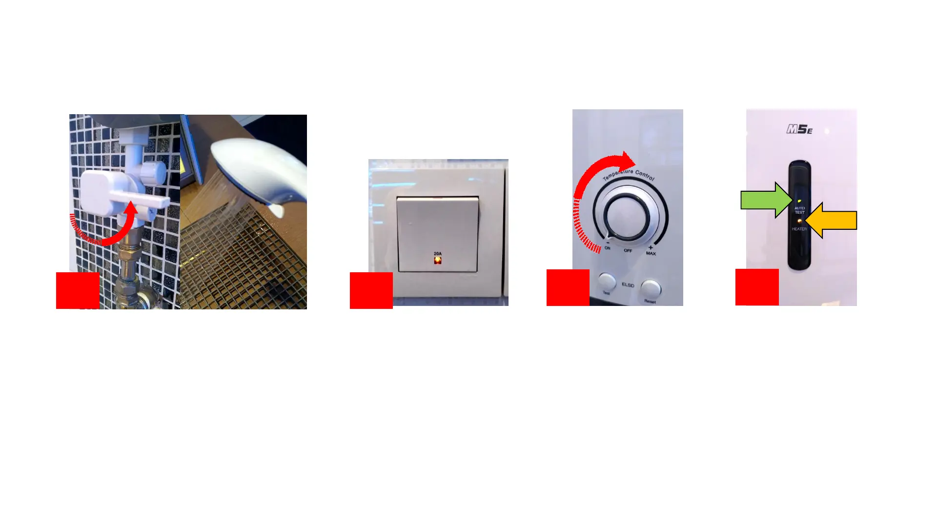 2. Switch on heater switch outside the bathroom. ELSD / Auto Test will light up.