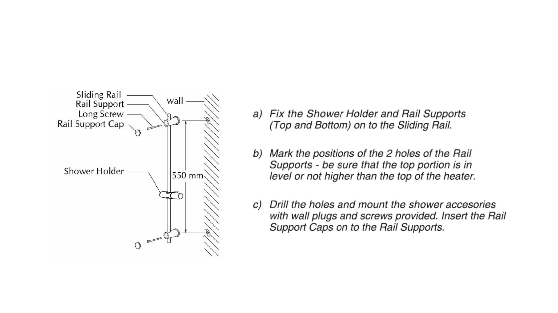 Alpha MULTIPOINT Series - Shower Accessories Installation; Mounting Shower Holder and Rail Supports