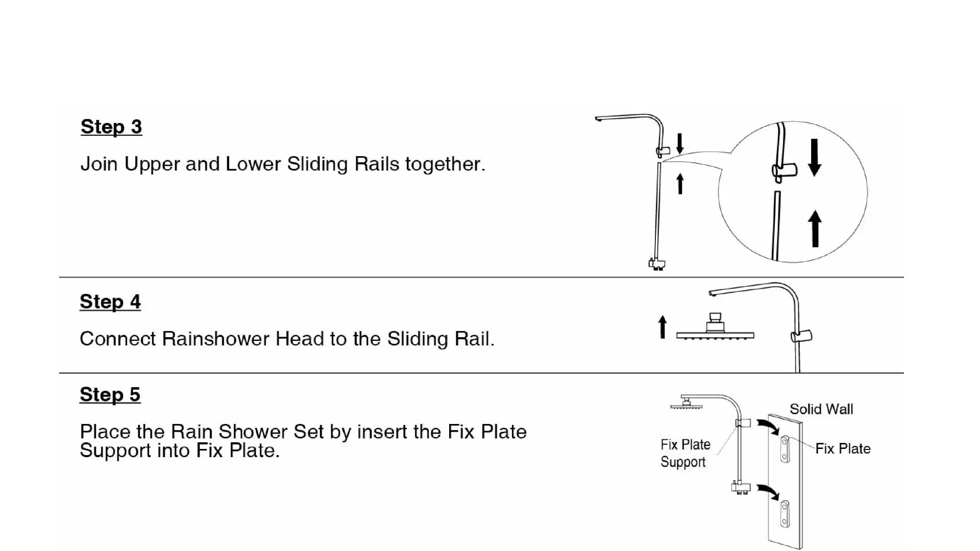 Alpha MULTIPOINT Series - Rain Shower Installation: Step 3-5; Sliding Rail Assembly and Shower Head Attachment
