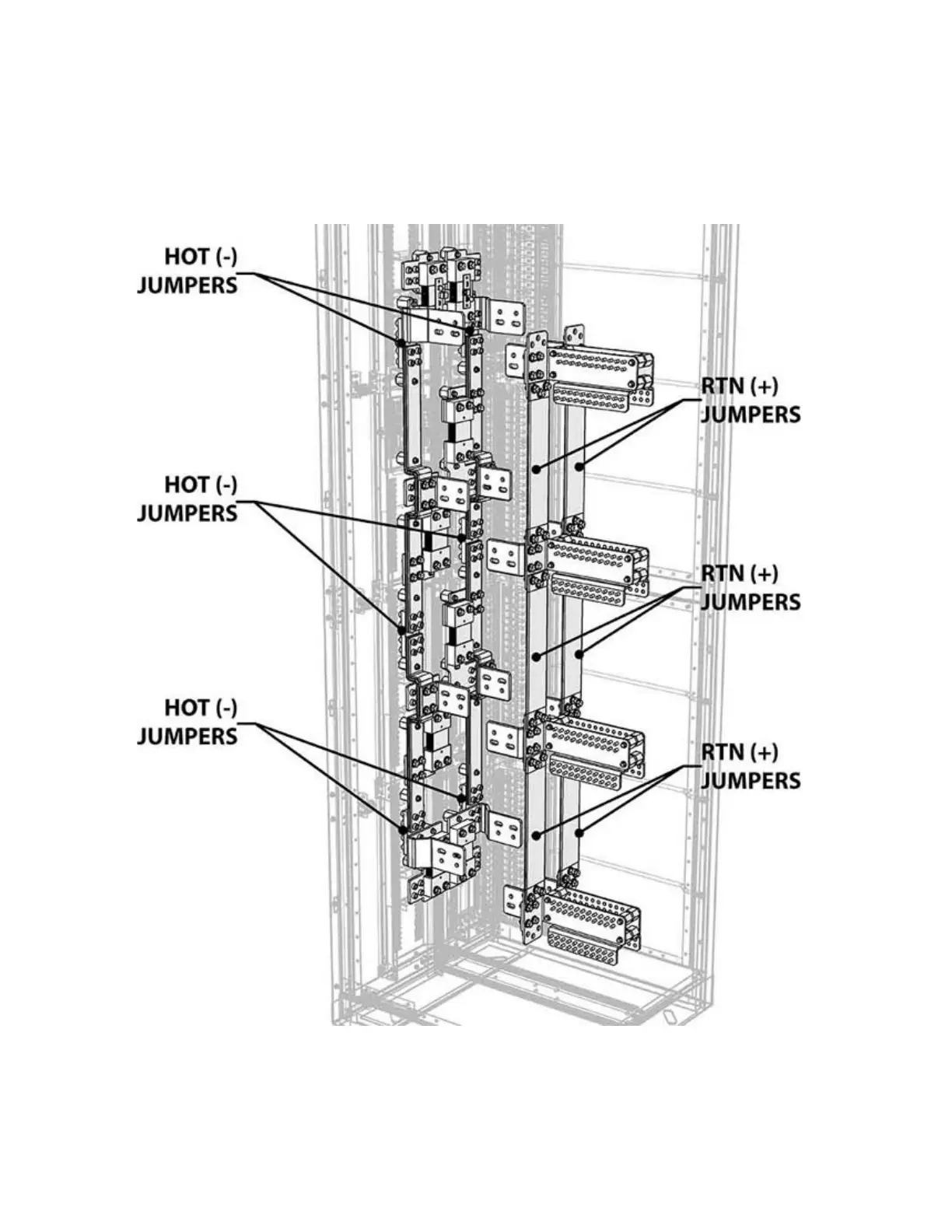 Alpha PowerBay BDFB - Dual-Bus Jumper Configuration; Dual-Bus HOT;RTN Jumper Layout