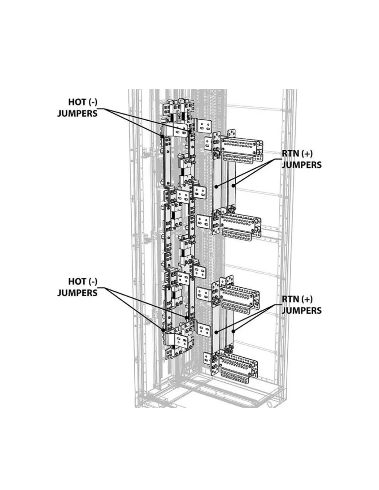 Alpha PowerBay BDFB - Quad-Bus Jumper Configuration; Quad-Bus HOT;RTN Jumper Layout