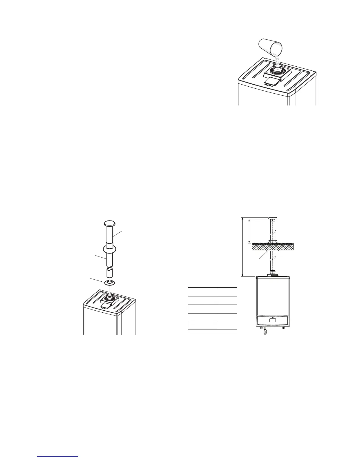the ue duct into the ue socket on top of the boiler up to the stop. Ensure the seal is pushed in position against the ceiling.