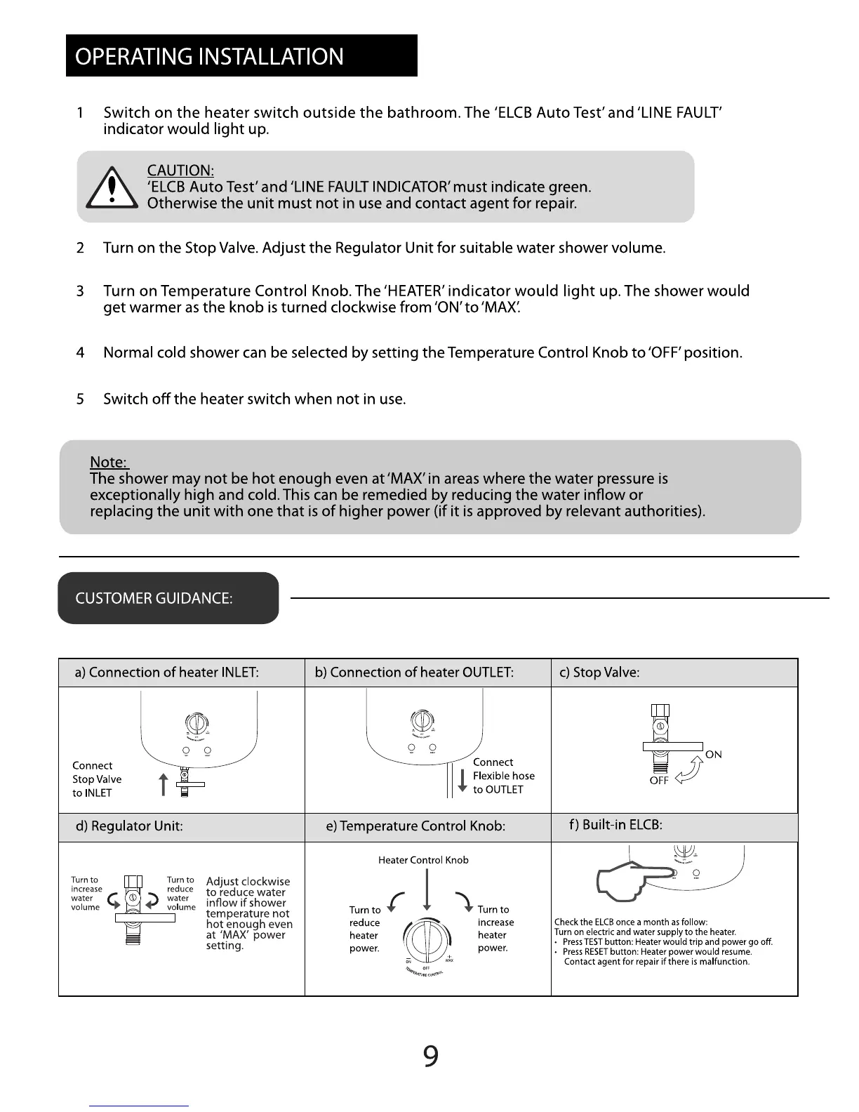 Alpha Smart 18E - Operating Installation; Initial Operation Steps; Customer Guidance on Controls
