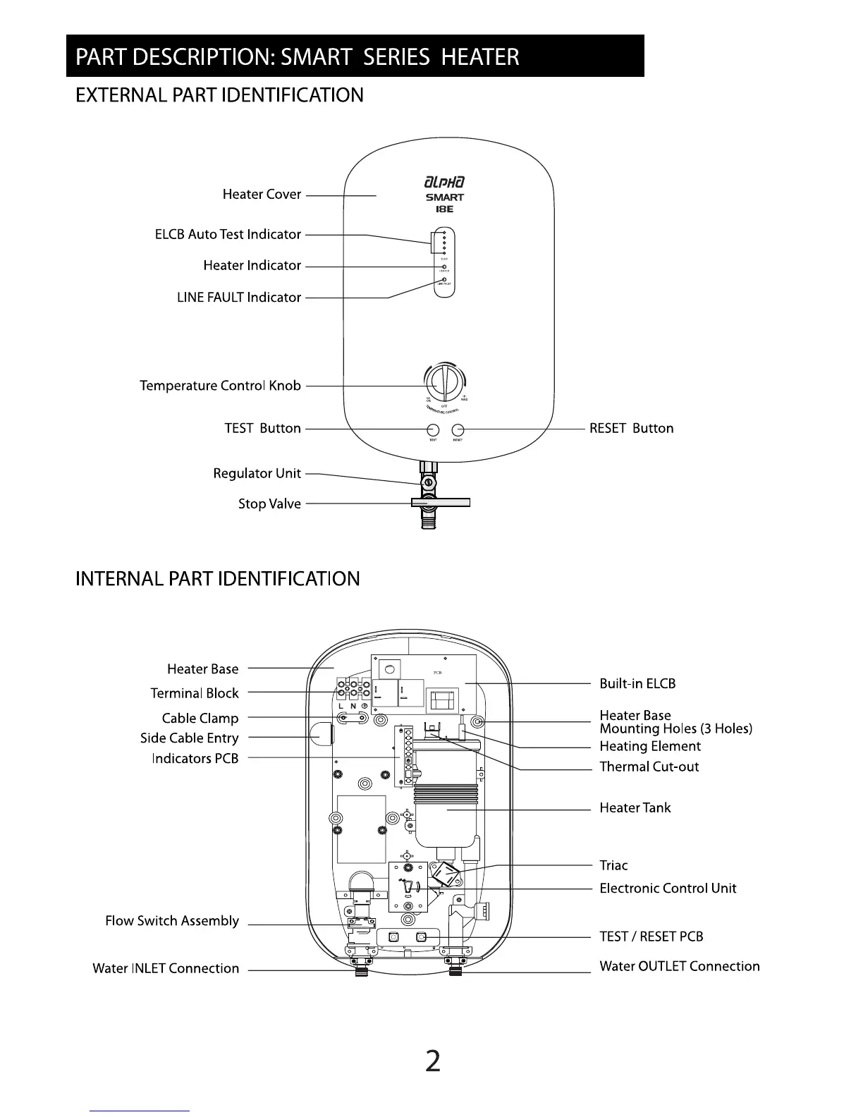 Alpha Smart 18E - Component Identification; External Part Identification; Internal Part Identification