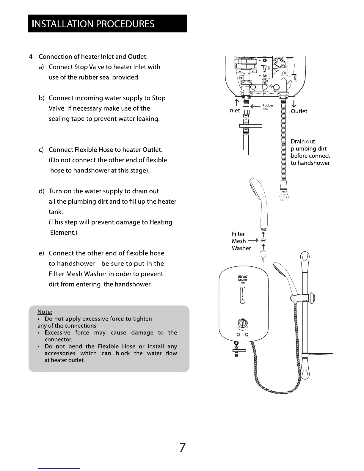 Alpha Smart 18E - Installation Procedures: Connections; Water Inlet and Outlet Connection; Electrical Connection