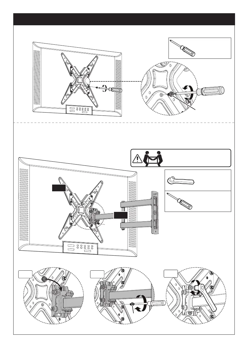 5-2 Hang the TV to the arm assembly / wall plate [01B], making sure the upper bolt