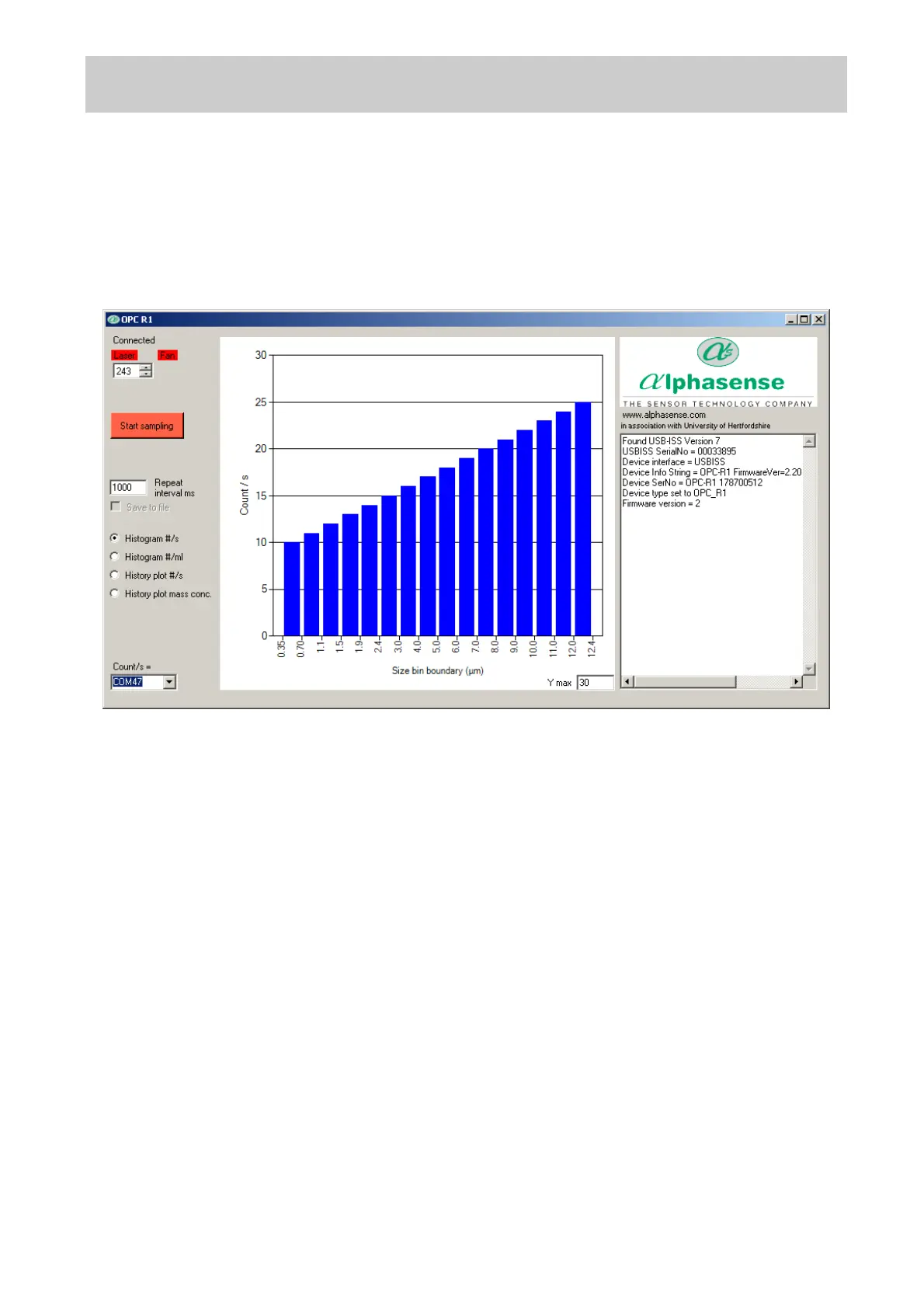 · Start sampling: Starts data collection, note on the OPC-R1 this does not start the fan and