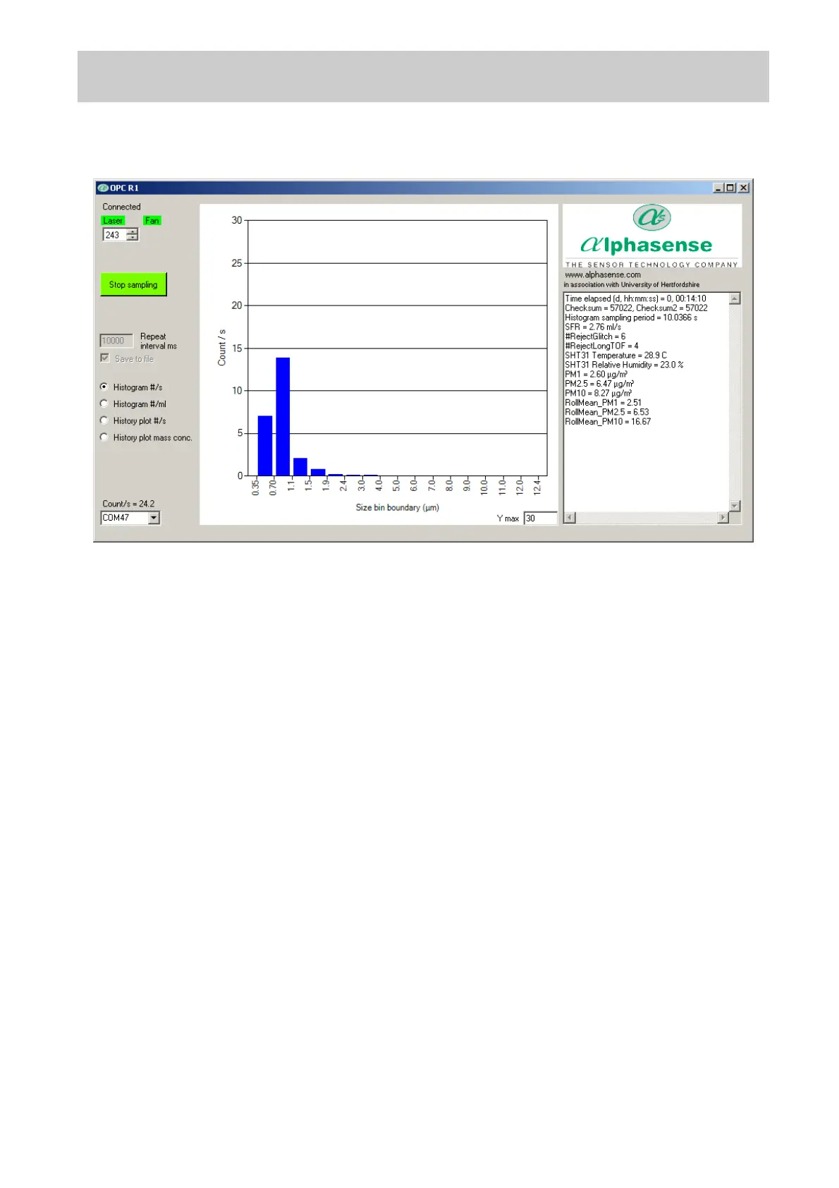 · The total particle count rate per second across all size bins (Counts/ s) is displayed in the