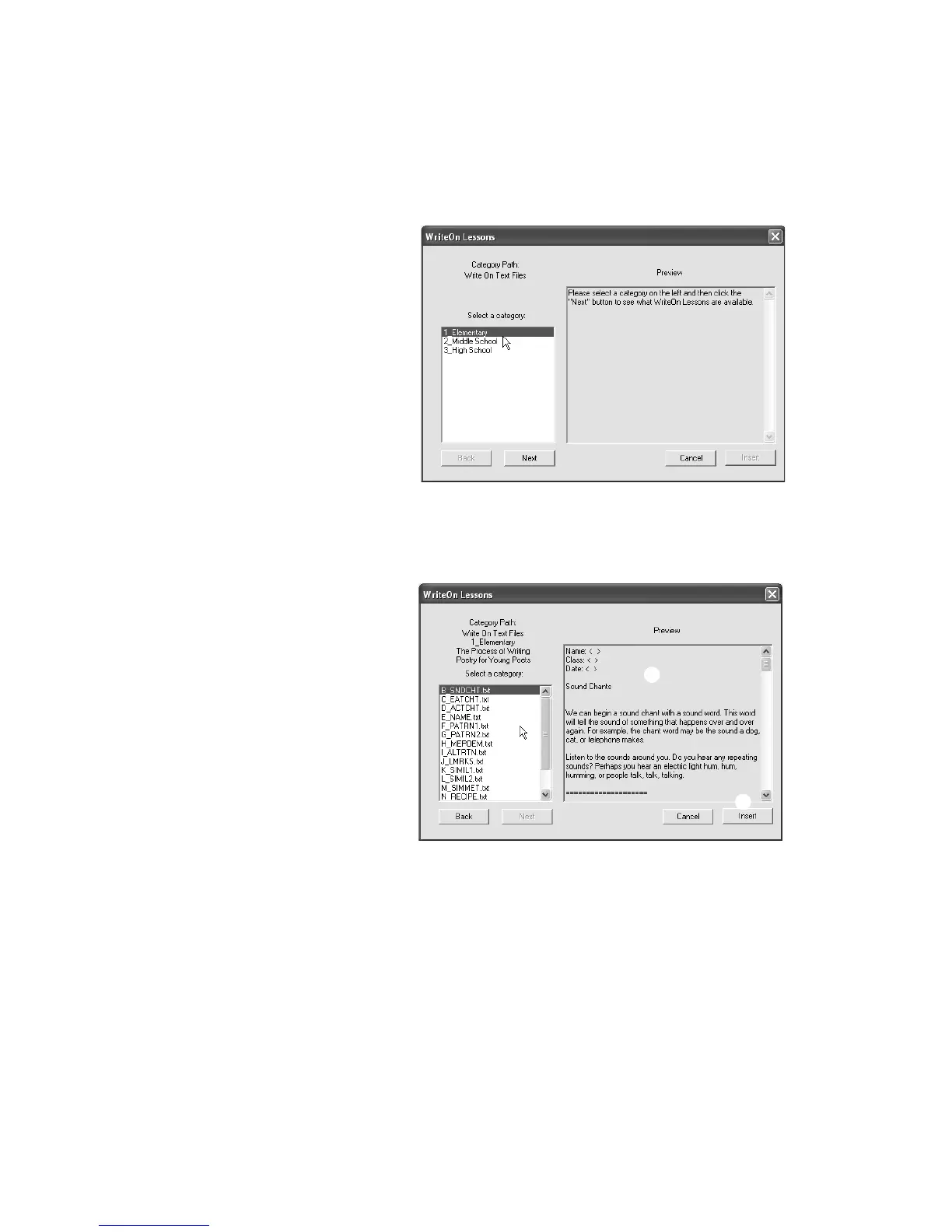 5. Click the lesson you want to select D and view the text in the Preview