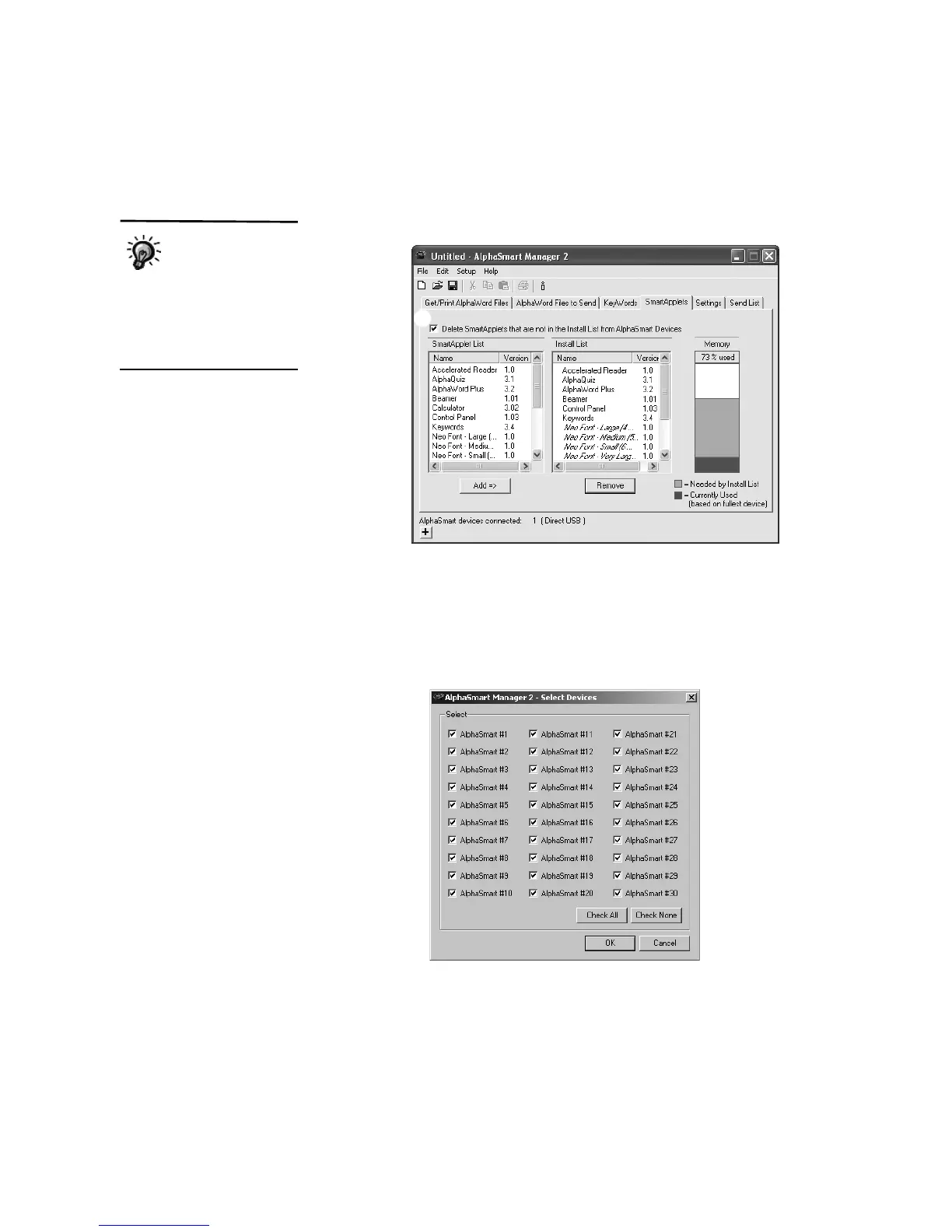 4. Click the Send List tab and verify that only the SmartApplets you want to