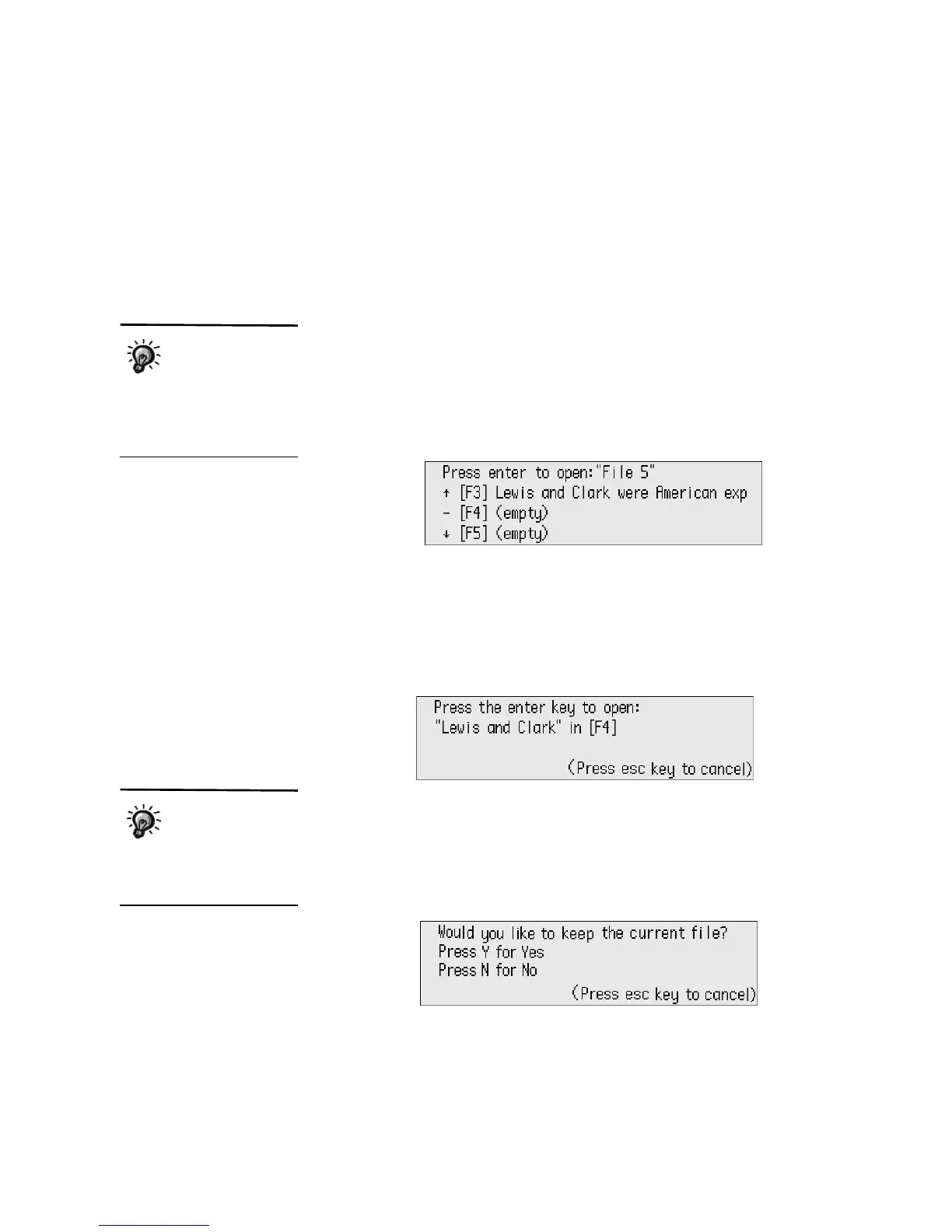 1. Press one of the eight file keys to choose which file space you want to