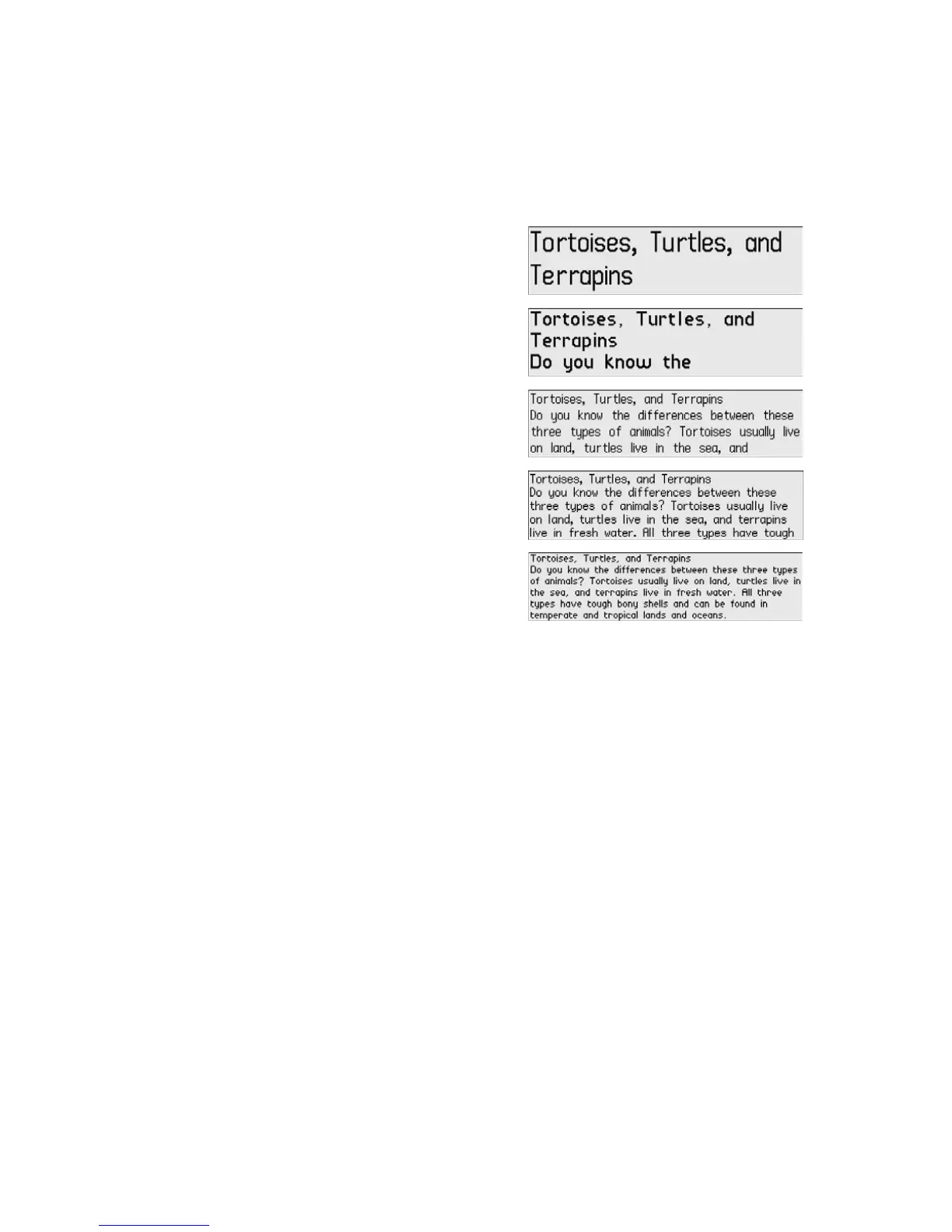 The illustrations below show examples of the font sizes.