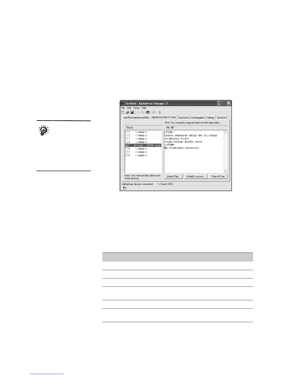 2. Click the AlphaWord Files to Send tab.