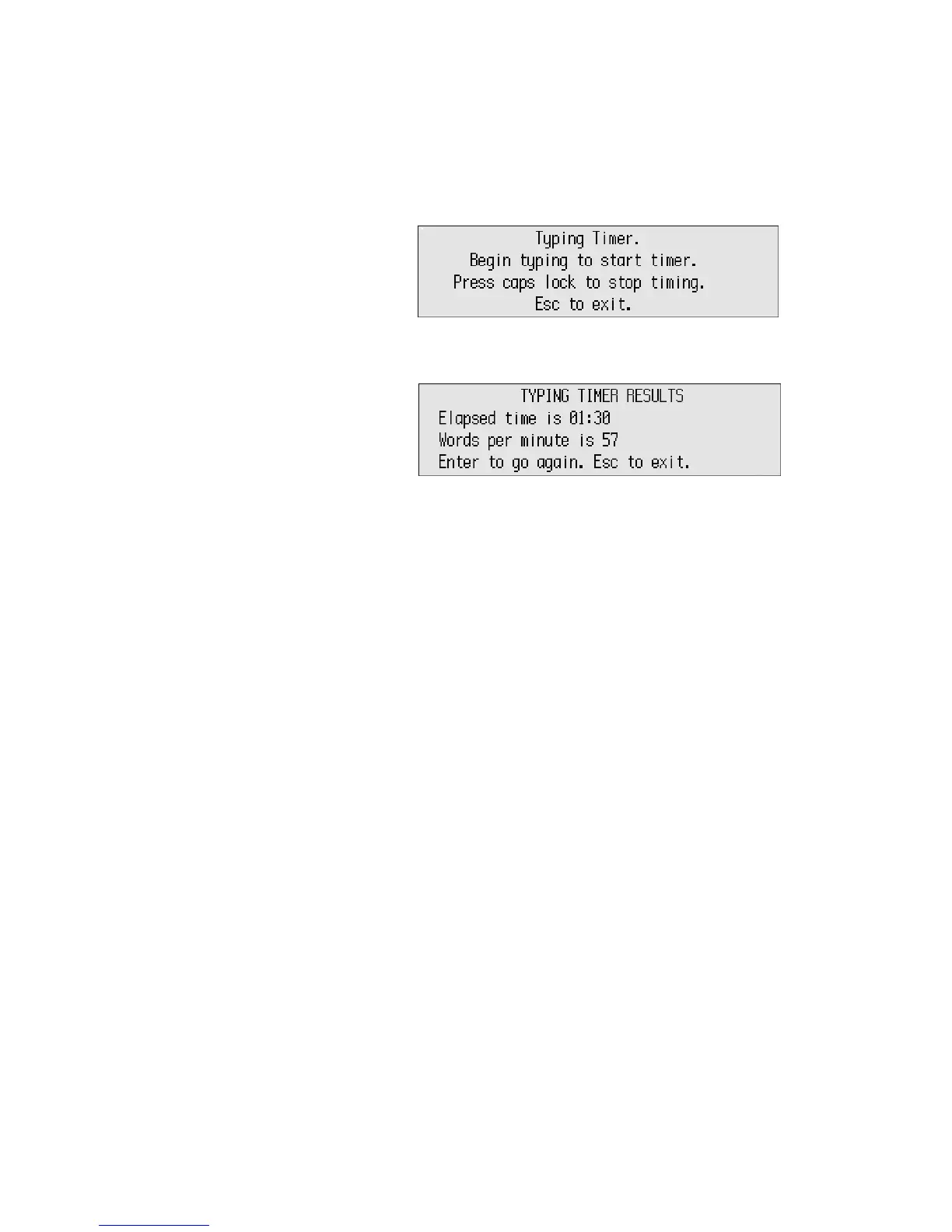 4. Press caps lock to stop. The elapsed time and words per minute appear.