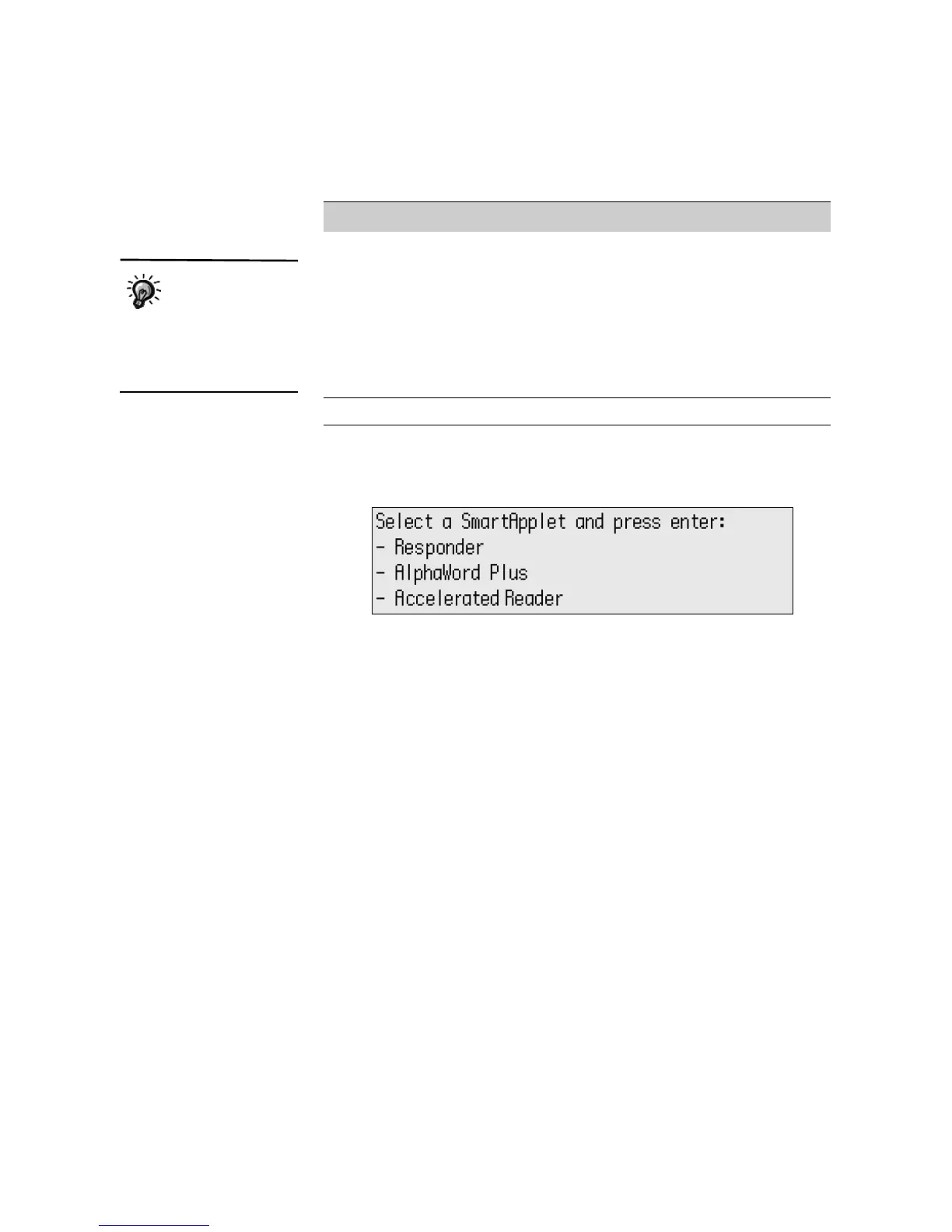 To see a list of the installed SmartApplets, press applets. To choose the one