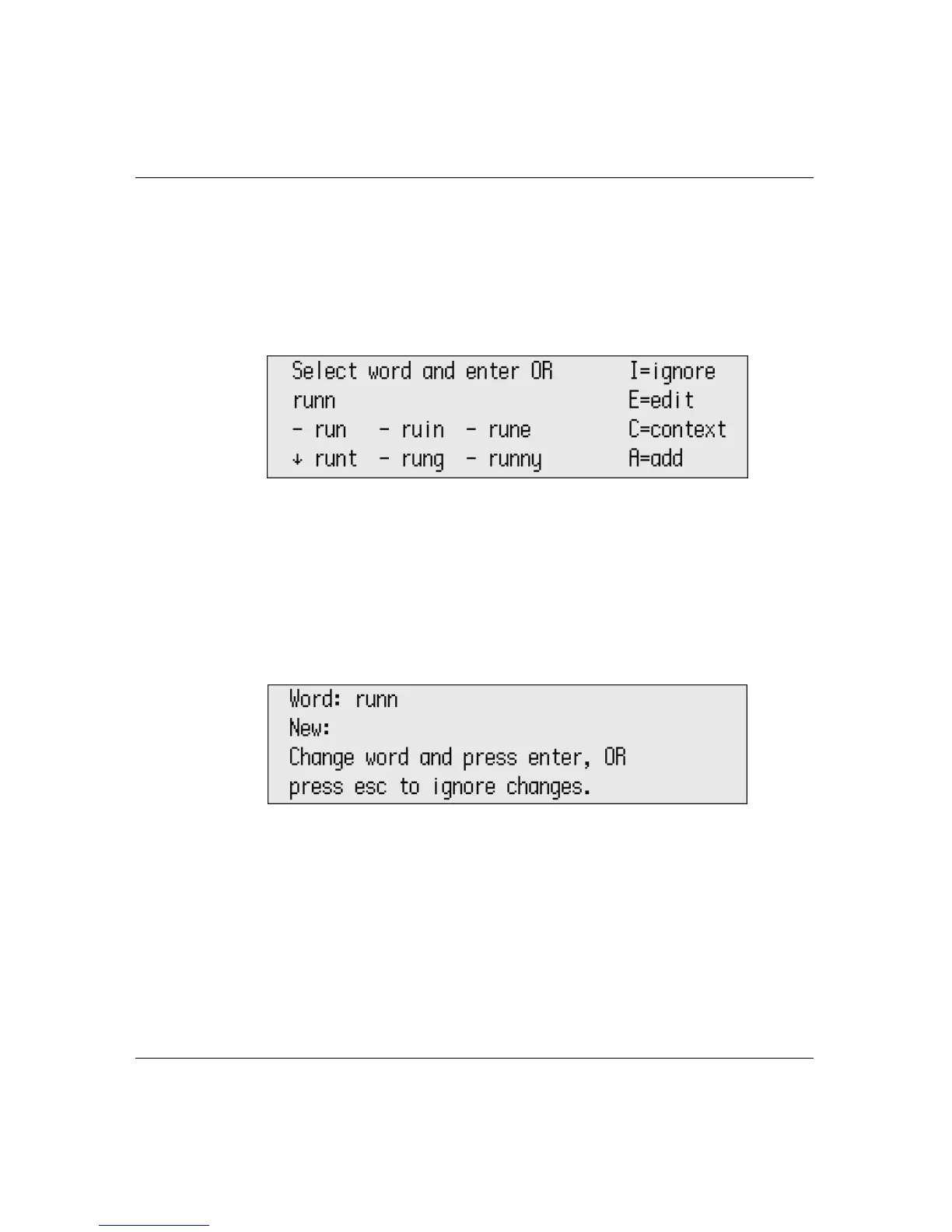 the misspelled word while viewing it in context. To exit from
