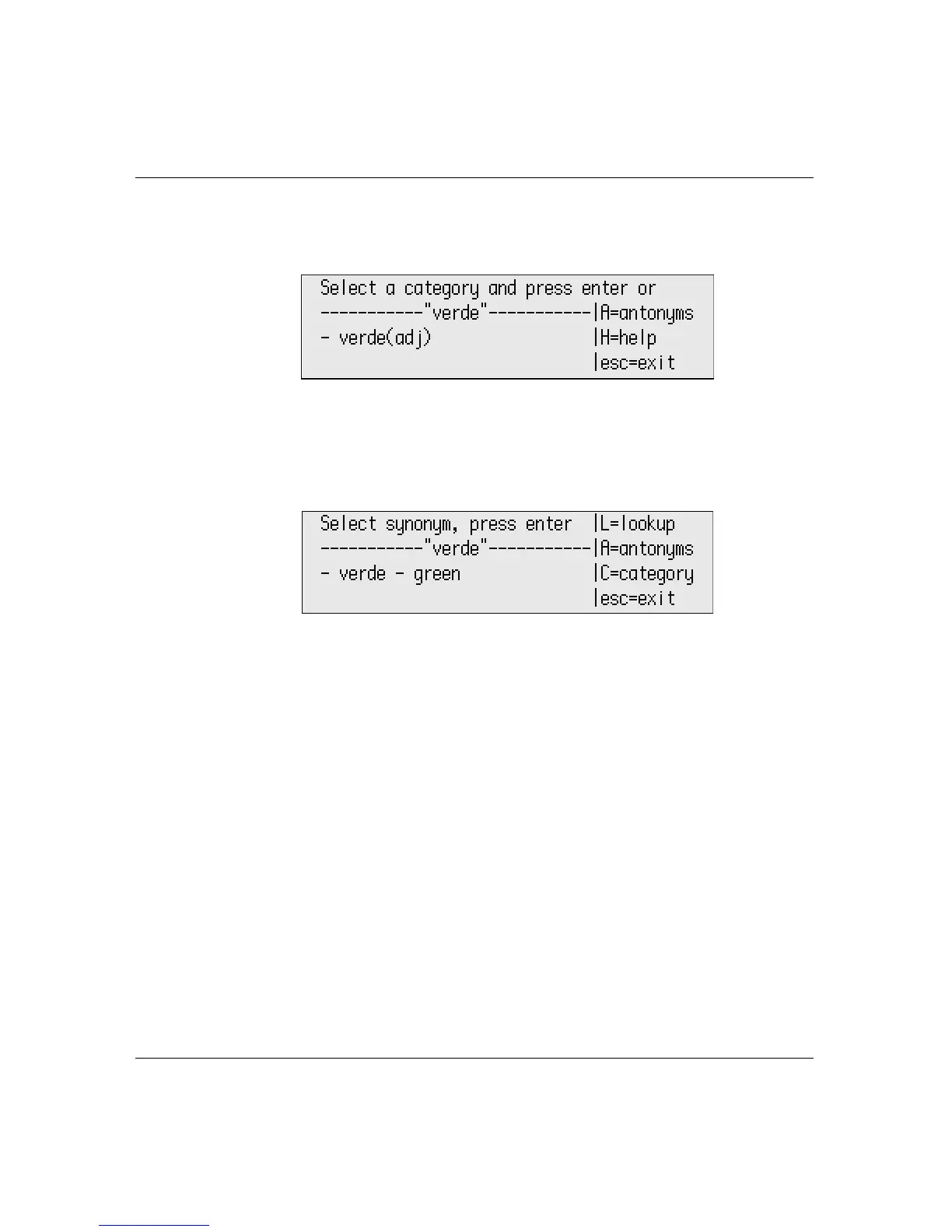 L to look up additional words or C to return to the category