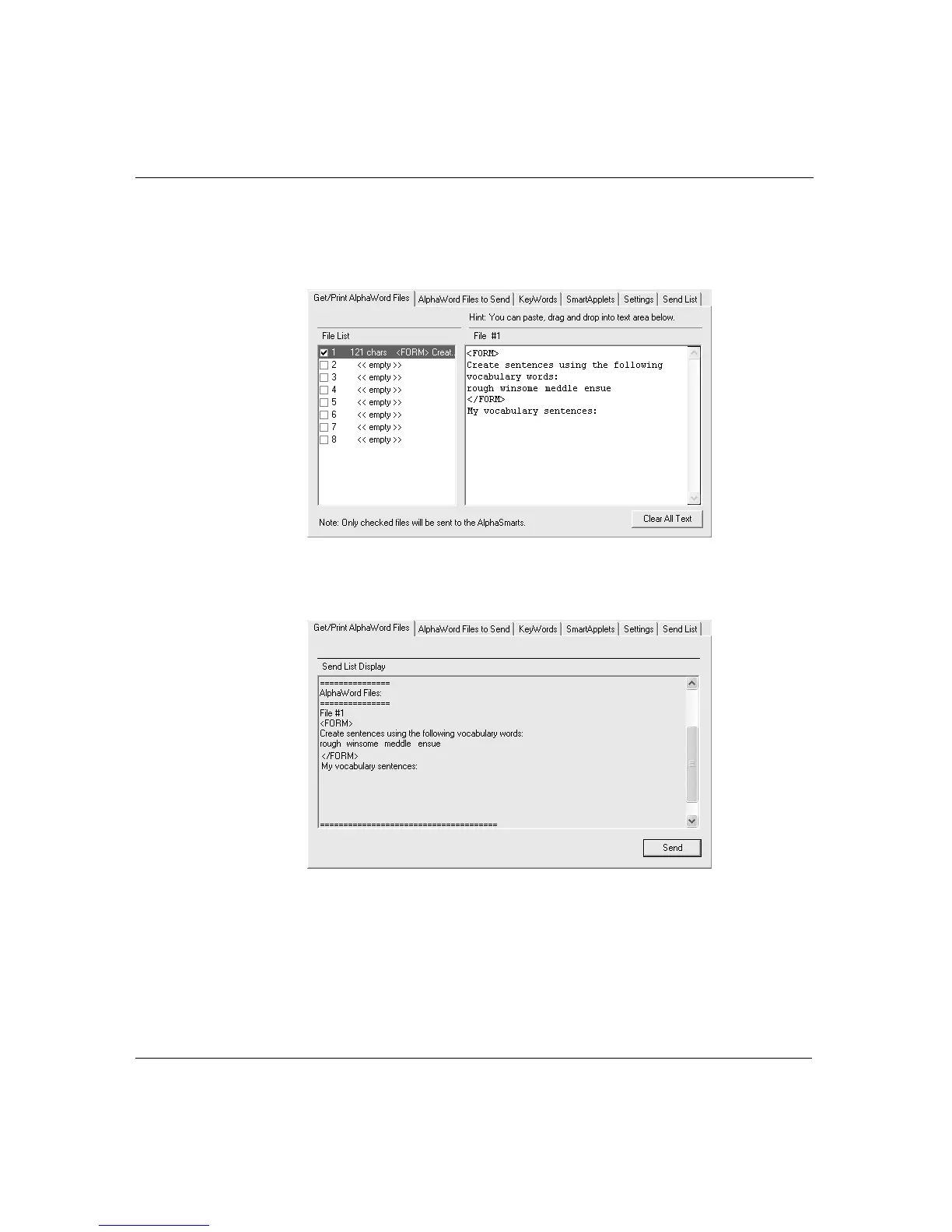 5. If you want to send any text for the main AlphaWord Plus file,