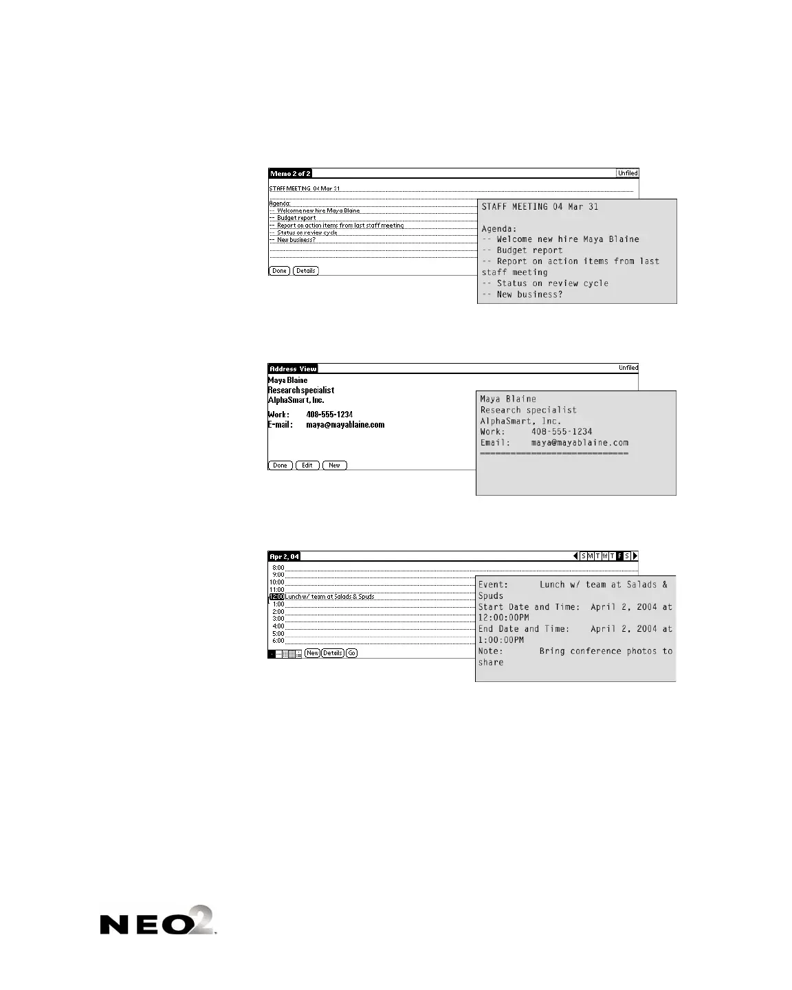 An address item from a Palm OS