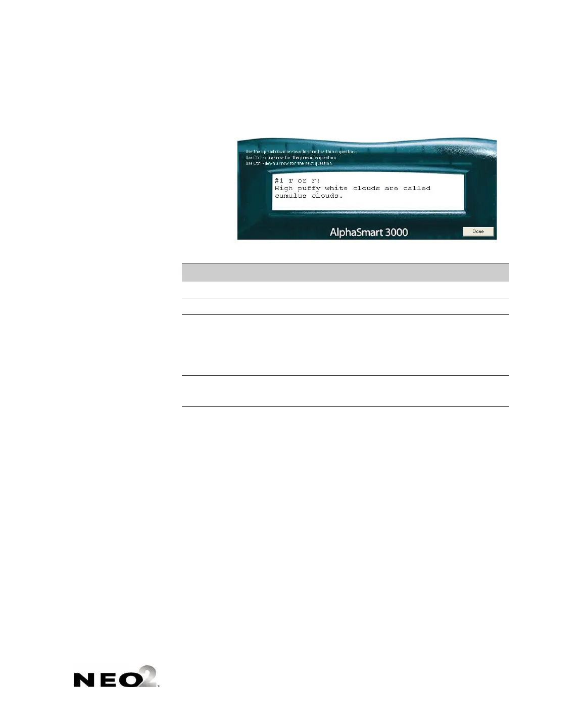 ↑ (up arrow) Scroll up in the question text.