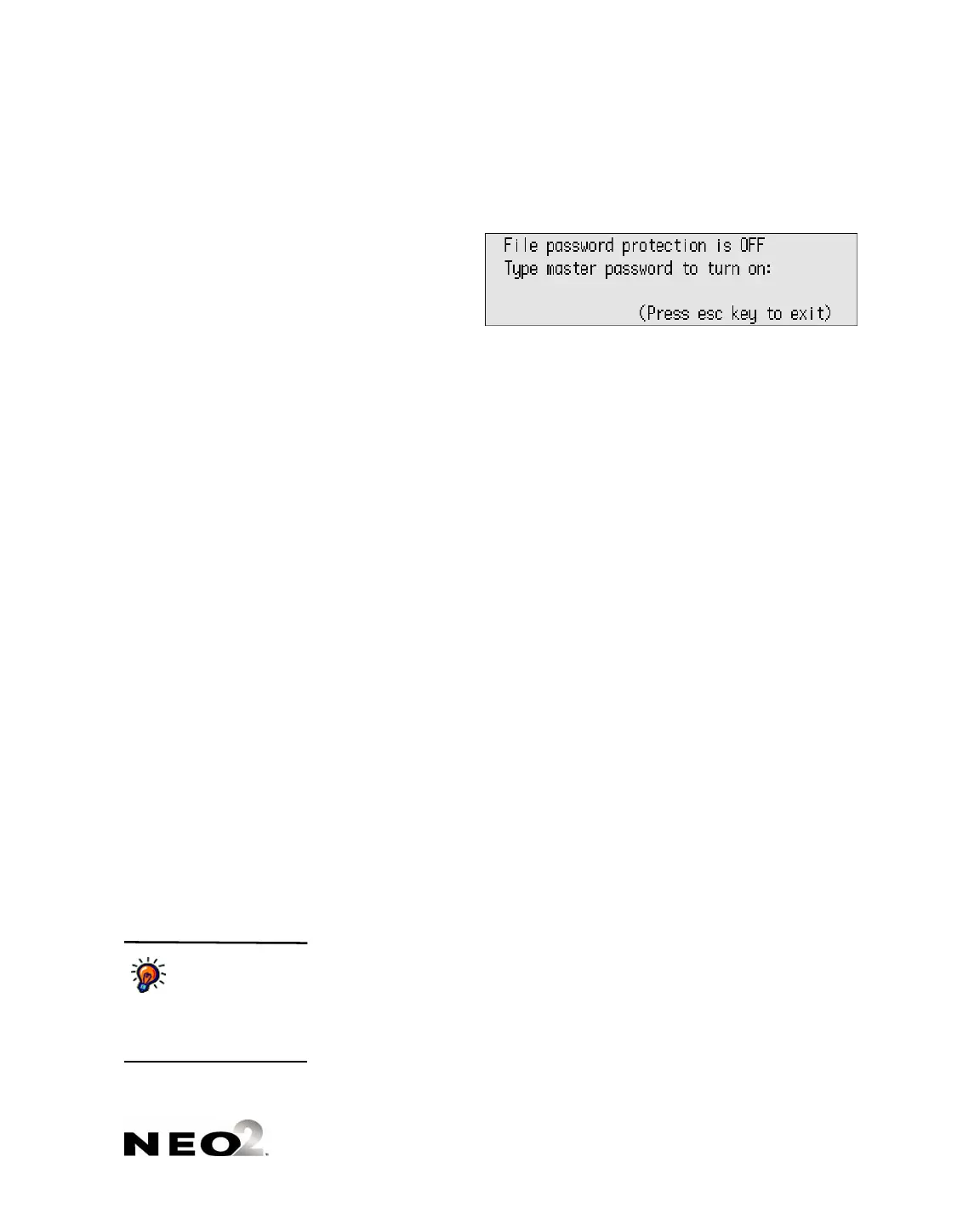To change individual file passwords on the NEO, open a file and press