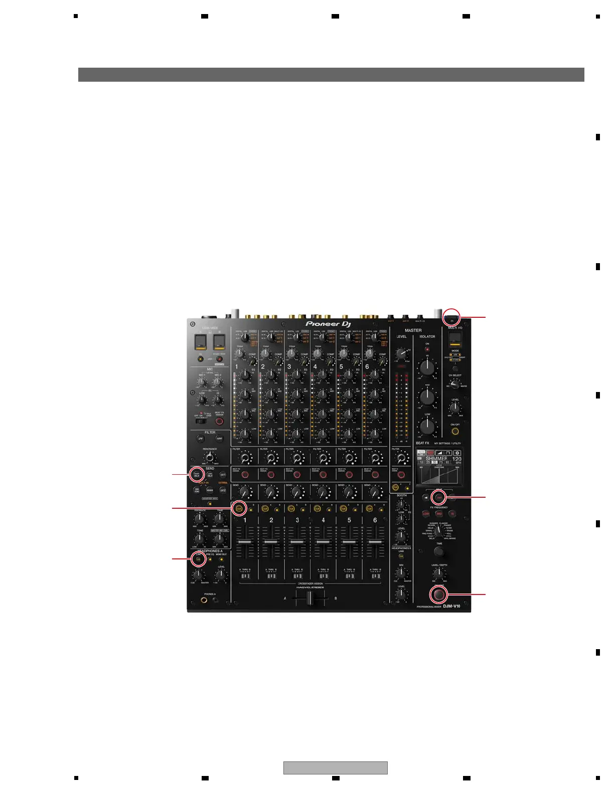 While holding the LINK CUE, CH1 CUE and SEND (SHORT DELAY) buttons pressed, press the u button to turn the unit on.