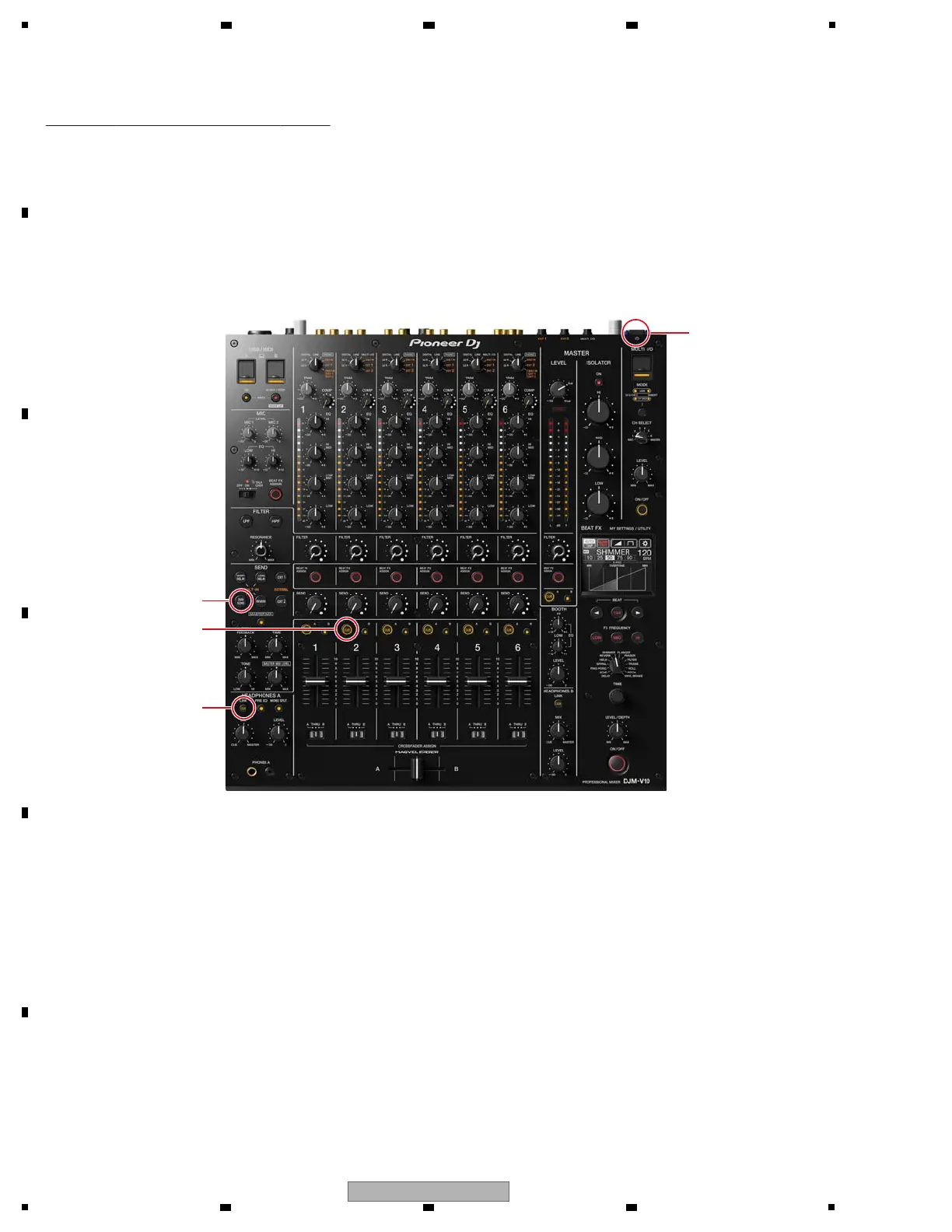 While holding the LINK CUE, CH2 CUE A and SEND (DUB ECHO) buttons pressed, press the u button to turn the unit on.