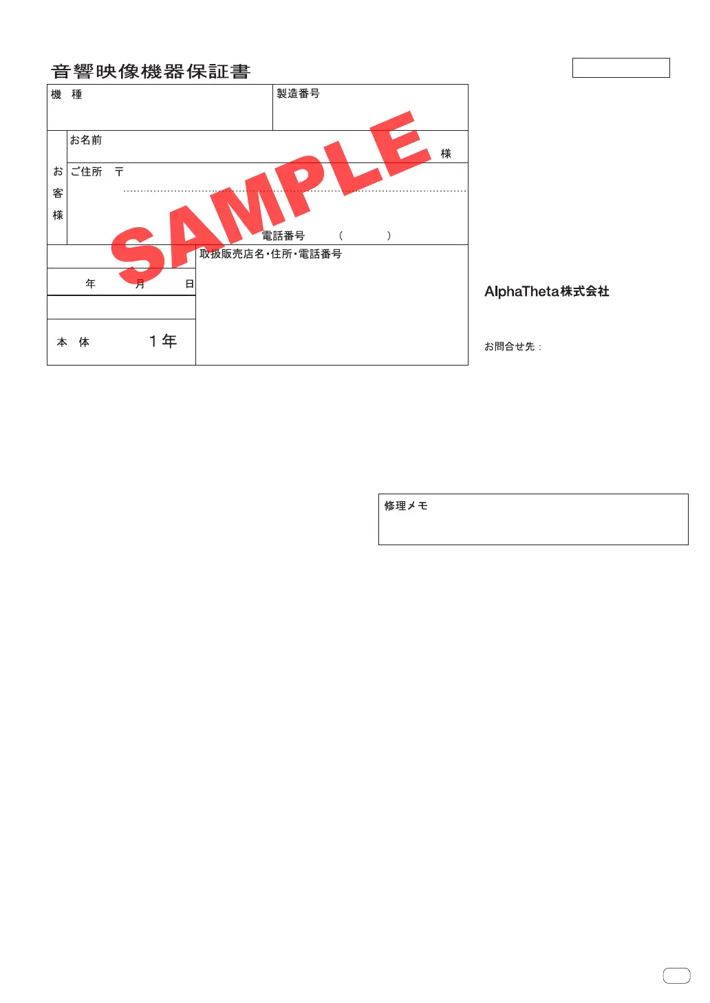 ※この保証書は、本書に明示した期間、条件のもとにおいて無料