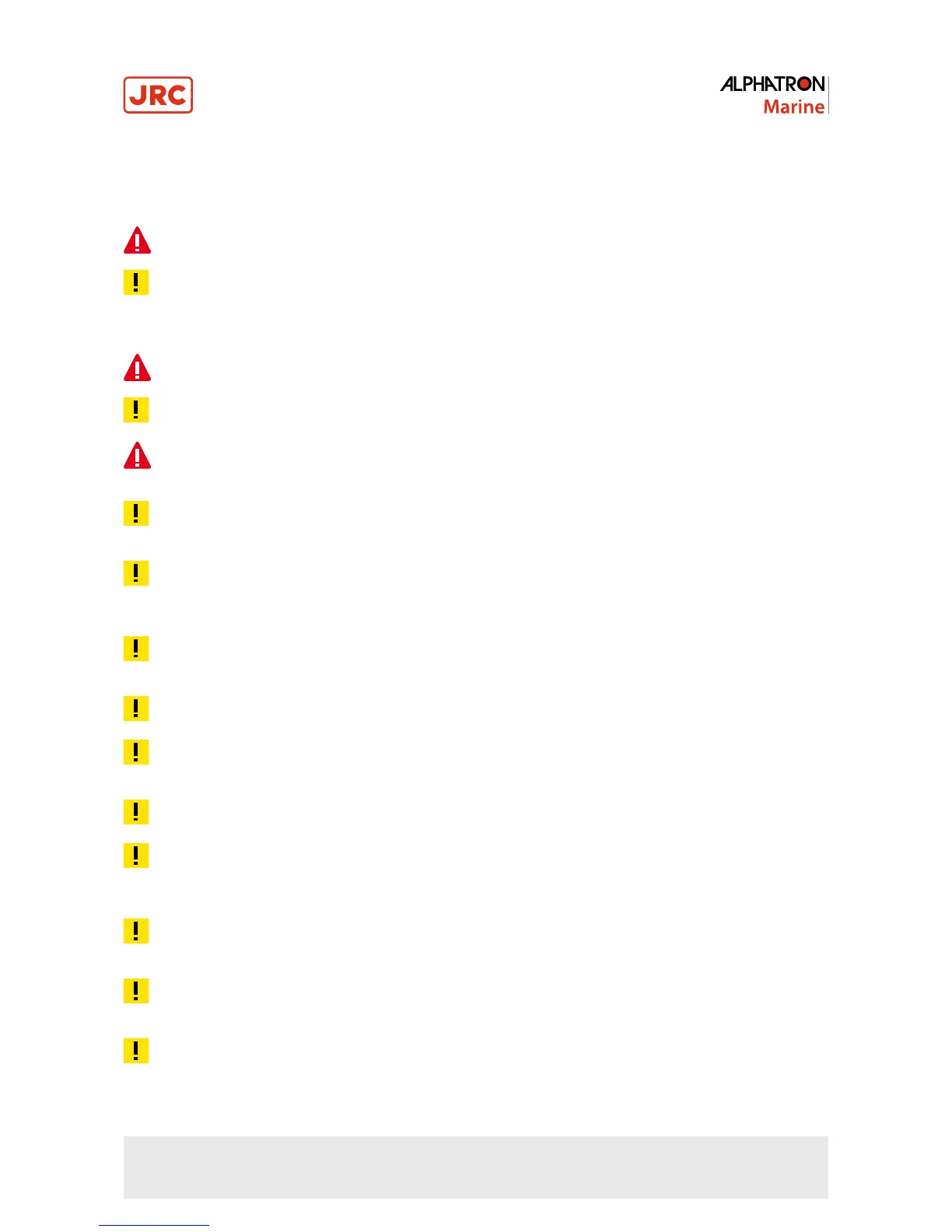• Any modification to this equipment without prior written permission from ALPHATRON MARINE will void the