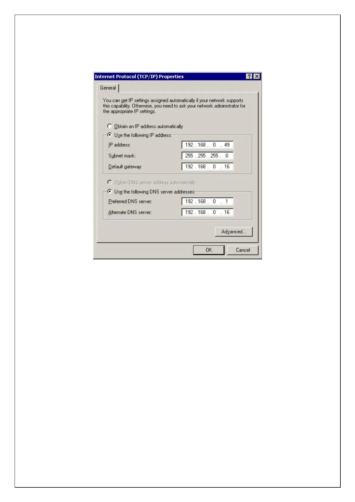Select the option „Use the following IP address‟ and enter 192.168.0.49 at the IP-address field and