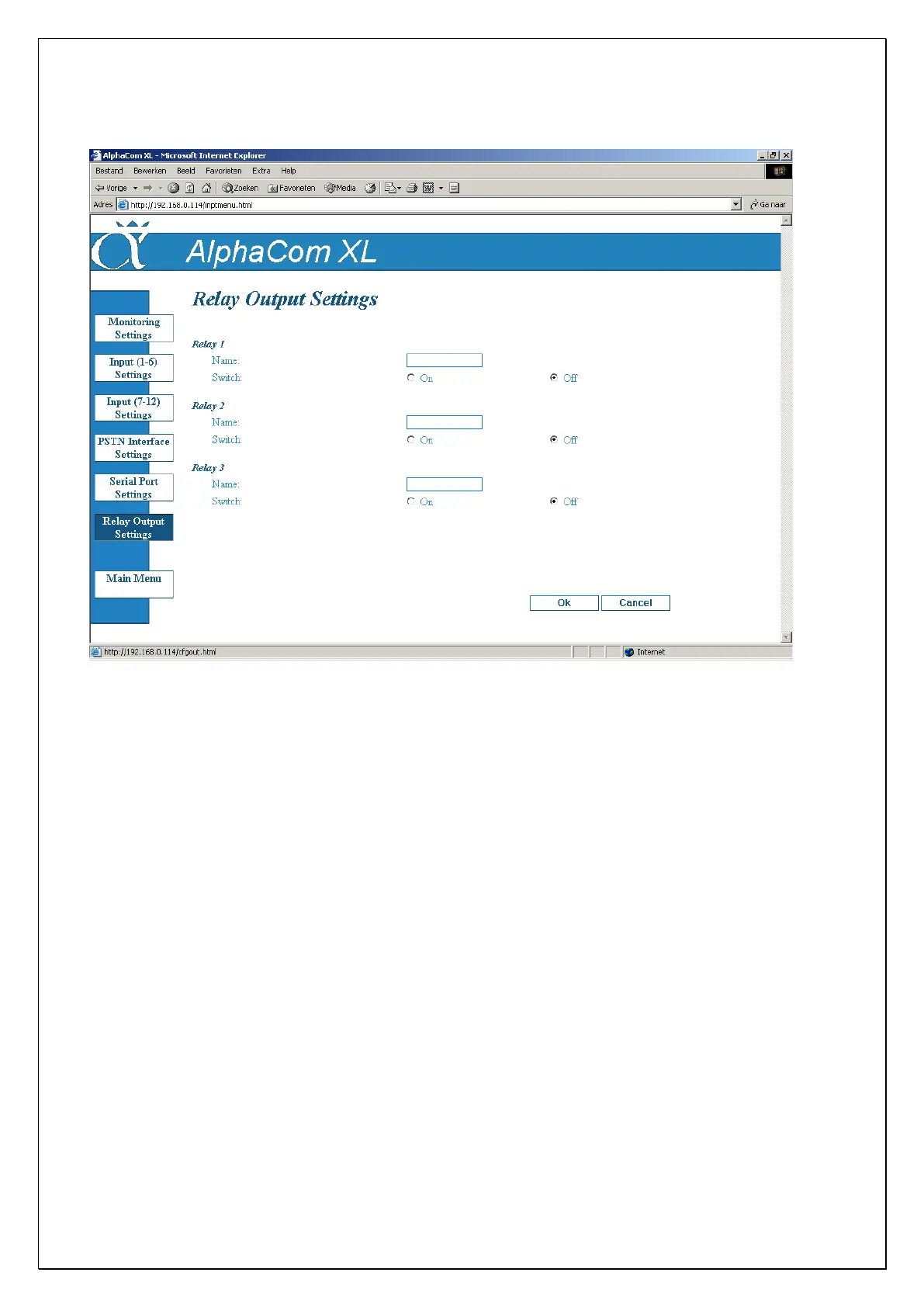 By pressing the „yes‟ or „no‟ button in the „activated‟ column, and then pressing „OK‟, the relay output will