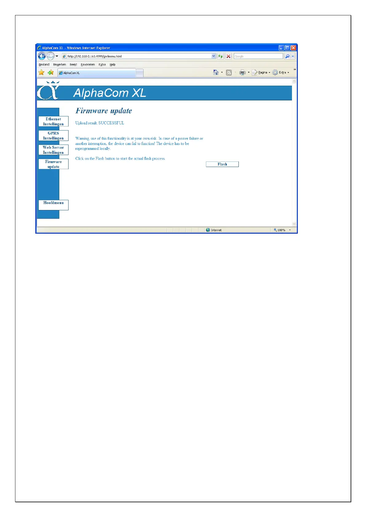 If the firmware update process is successful, the following screen will appear.
