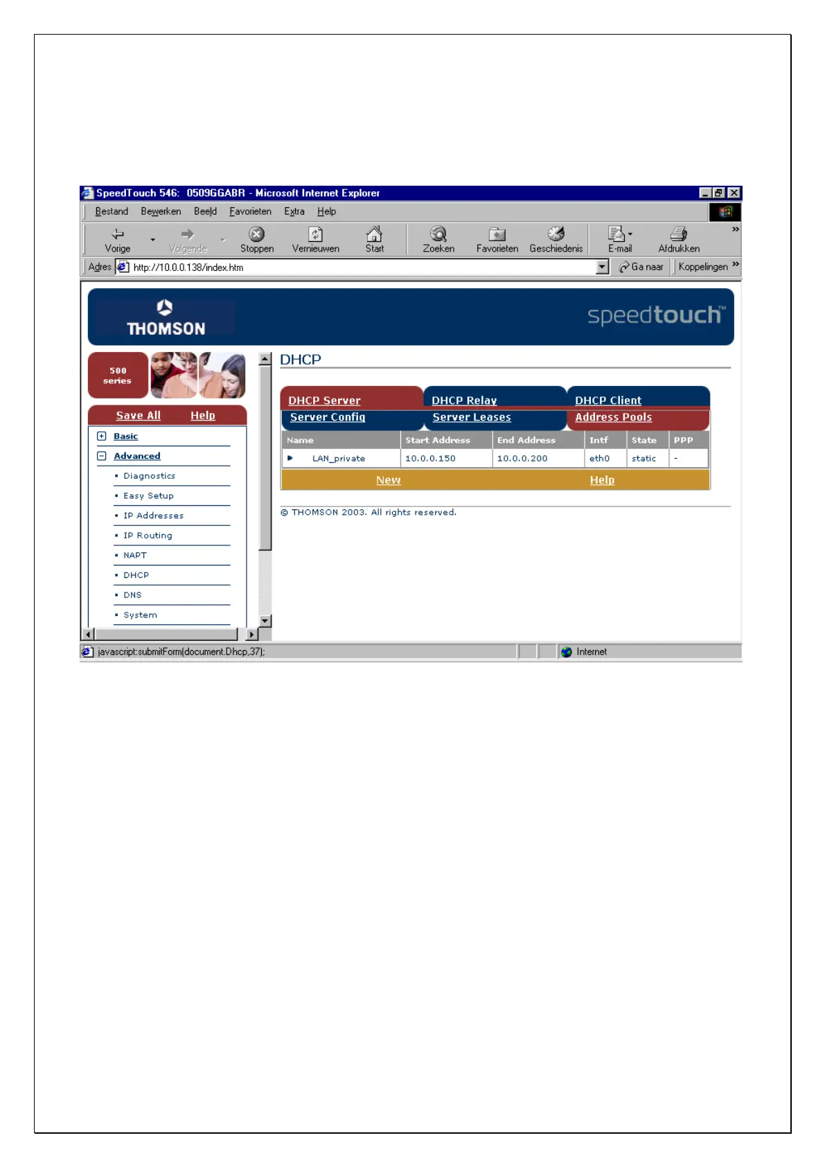 widely used Speedtouch ADSL modem/router, the screen in which it is programmed looks as follow.