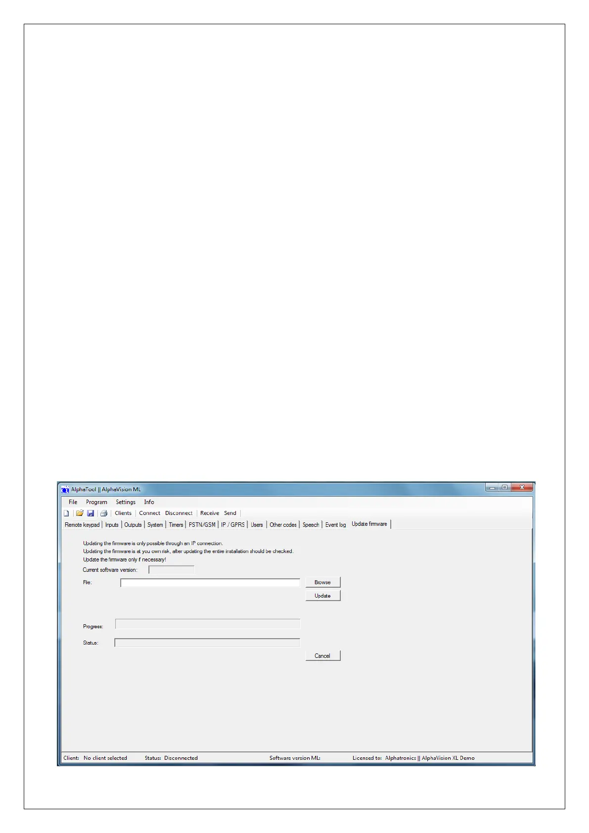 upgrade remotely. Using the AlphaTool software and an IP connection new firmware can be