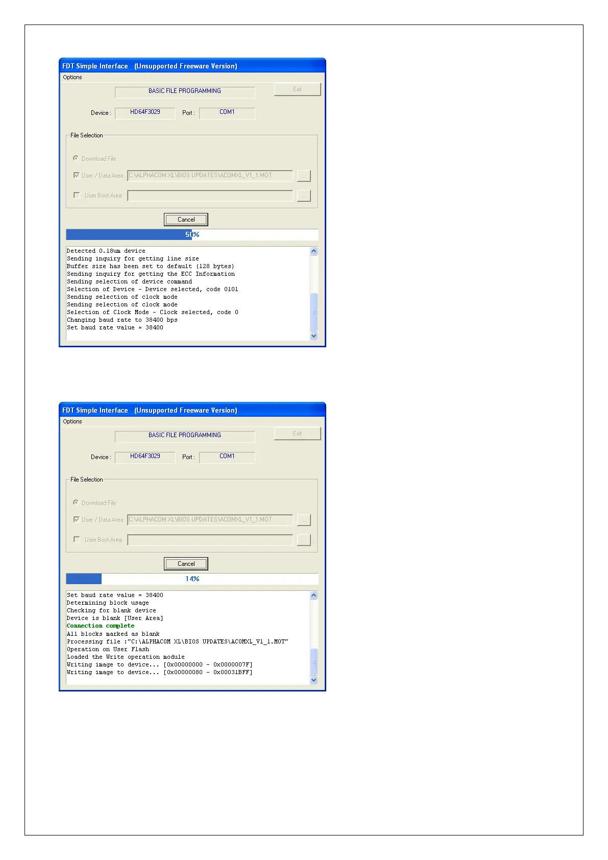 After the connection is established, the software will flash the new firmware into the microprocessor of the