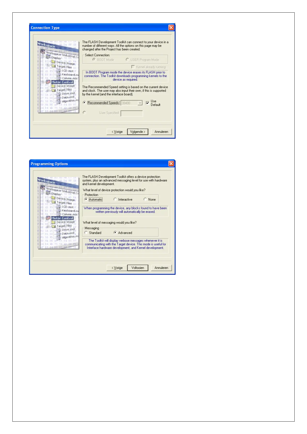 Press the Finish button. The flash utility will now try to establish a connection with the microprocessor. If