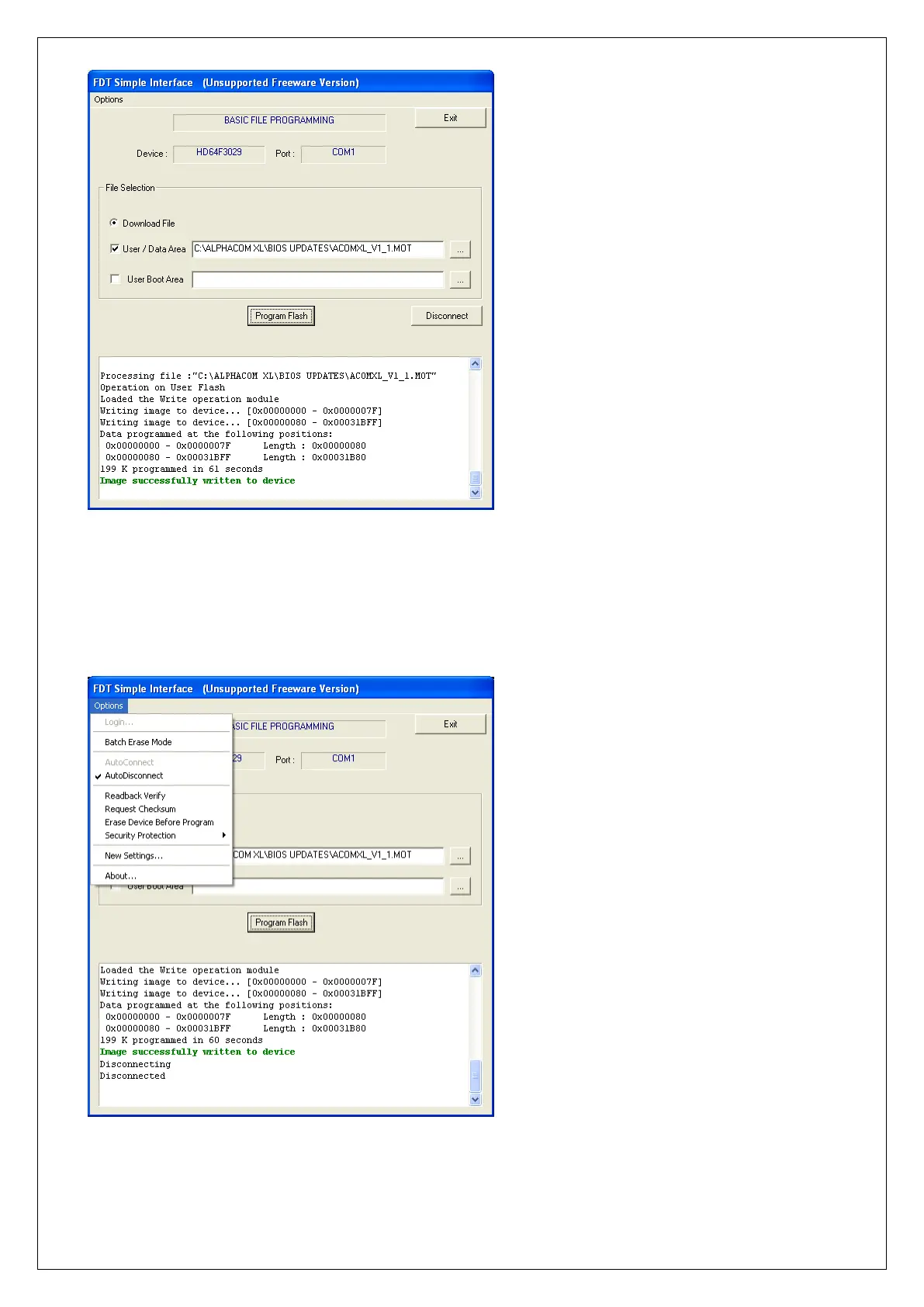 green text Image successfully written to device will appear in the text box. Now press Disconnect.